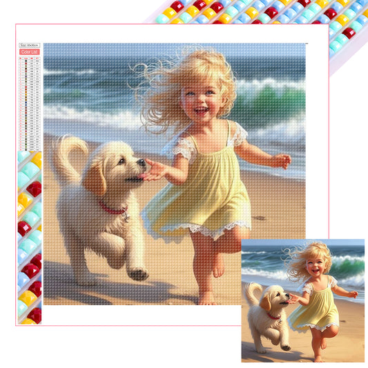 Little Girl On The Beach - Full Round Drill Diamond Painting 40*40CM