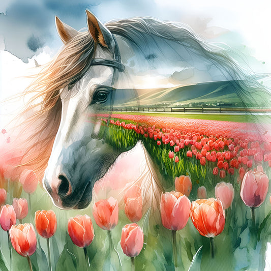 Horse And Tulip Flower Sea - Full Round Drill Diamond Painting 30*30CM