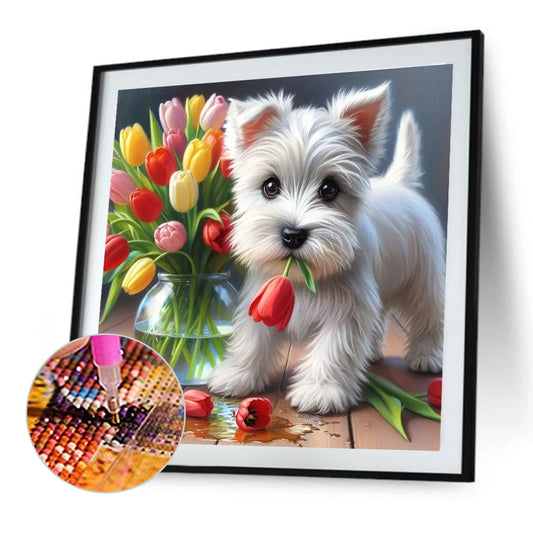 Tulip West Highland White Terrier - Full Round Drill Diamond Painting 30*30CM
