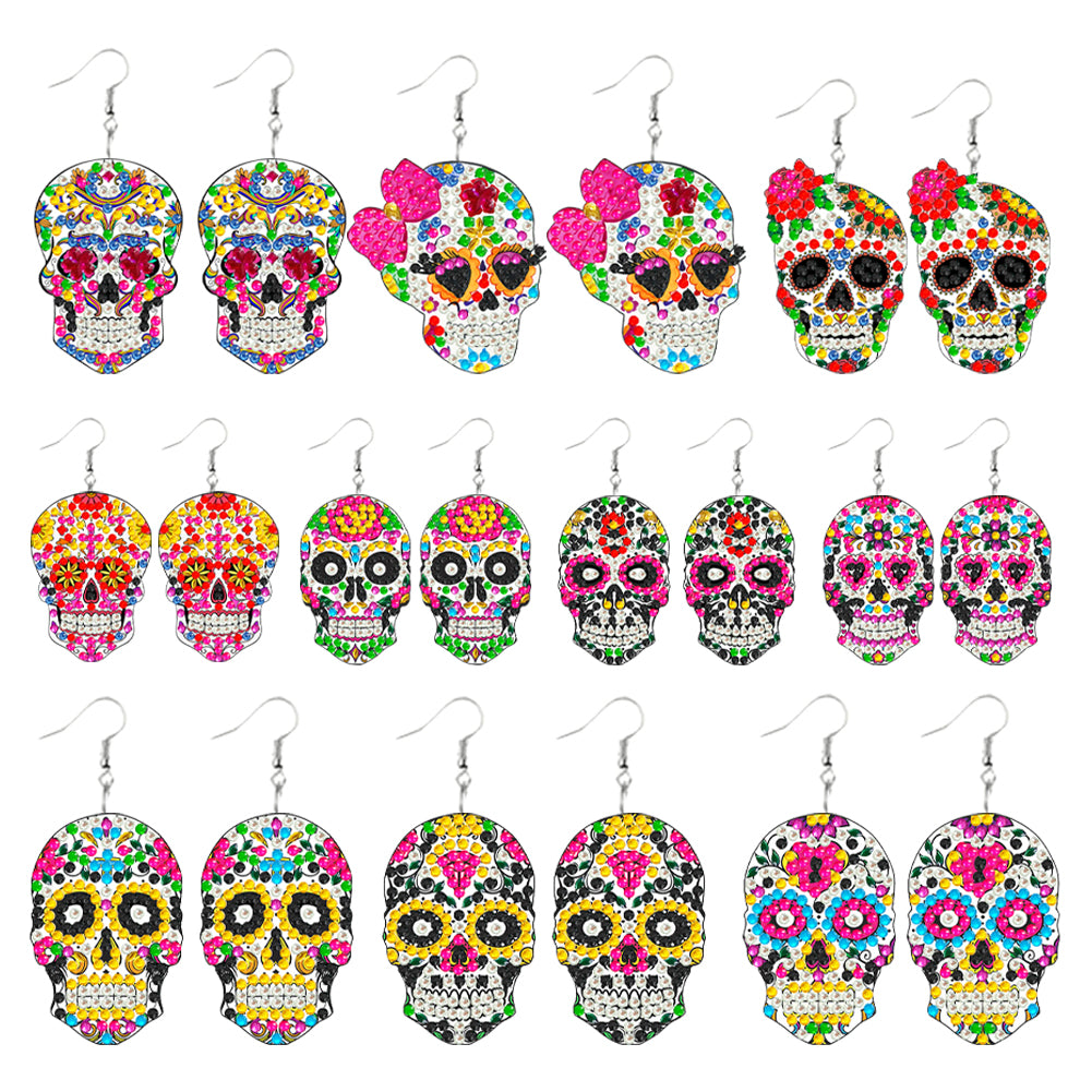 10Pairs Halloween Skull Double Sided Diamond Painting Earrings The Dead Earrings