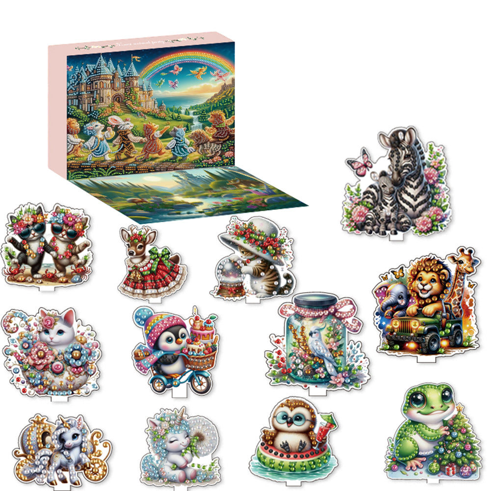 12 Cute Animals DIY Diamond Ornaments Scene Box for Home Office Bedroom