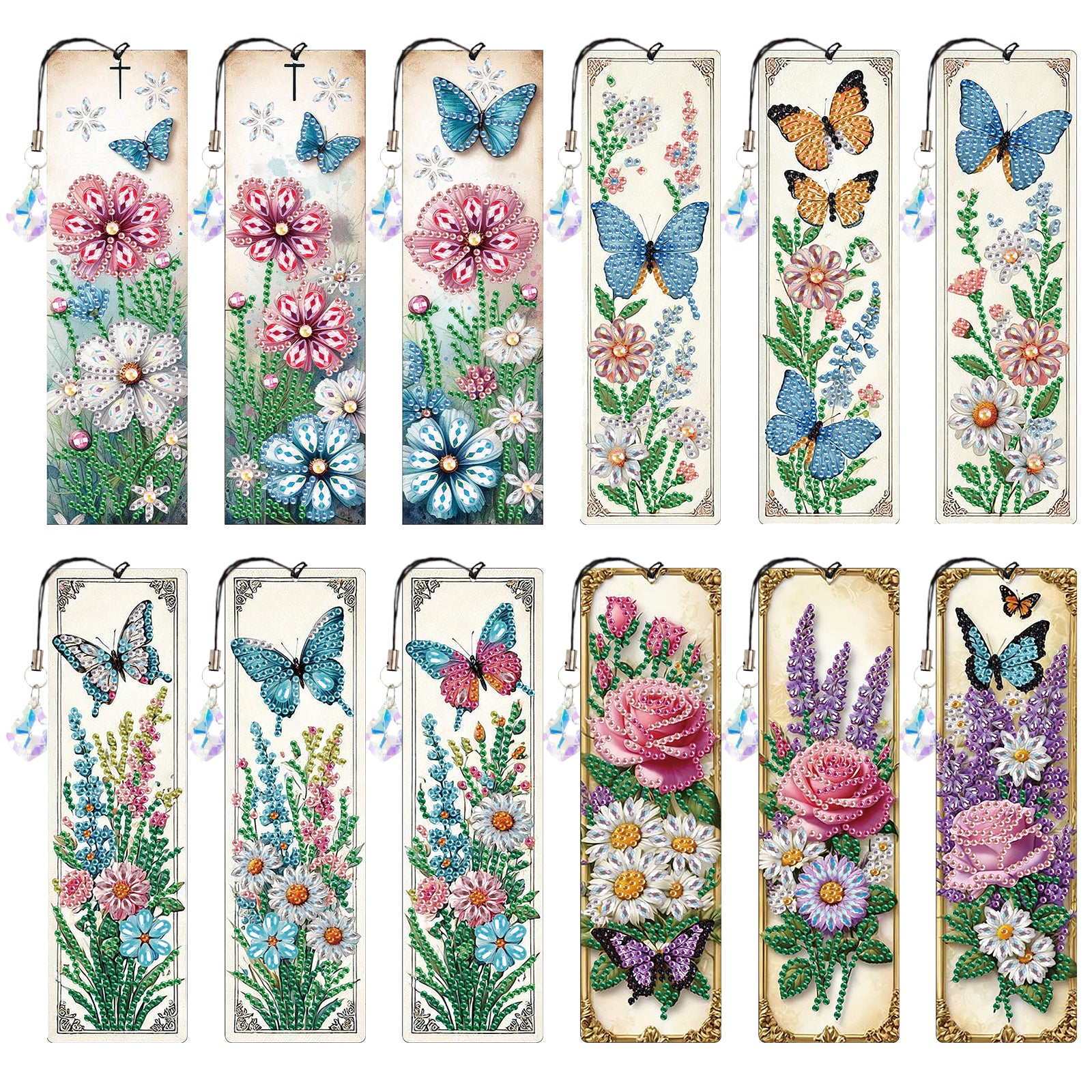 12Pcs Butterfly Flowers DIY Diamond Painting Bookmark for Adults Book Lovers
