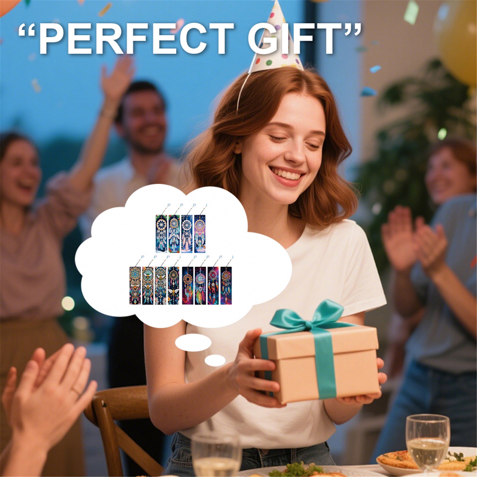 12Pcs Dreamcatcher DIY Diamond Painting Bookmark with Crystal Pendant Book Decor