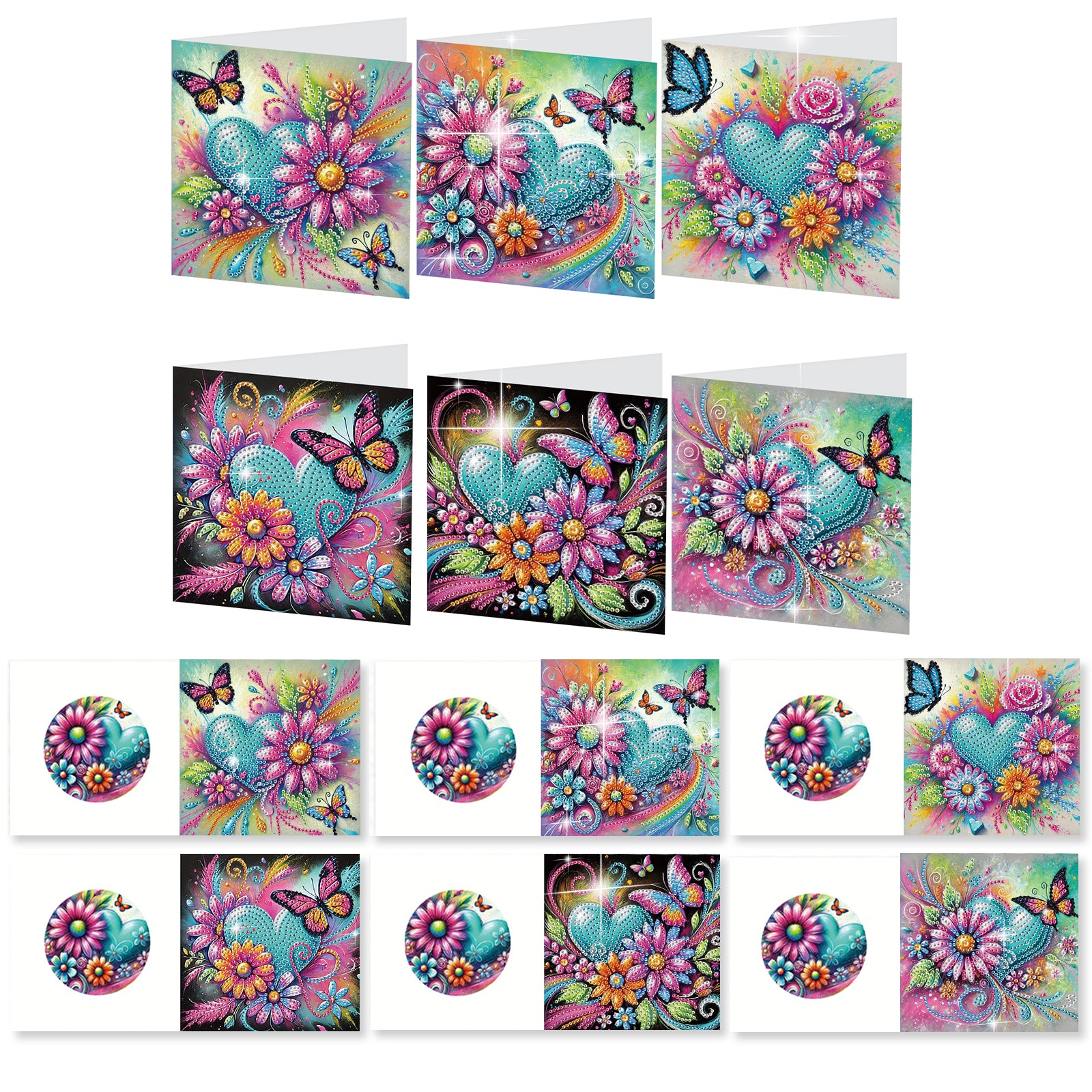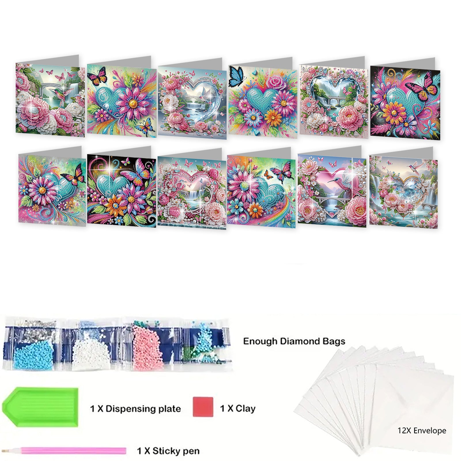 12PCS Flower Heart DIY Diamond Painting Greeting Card Set with Envelopes