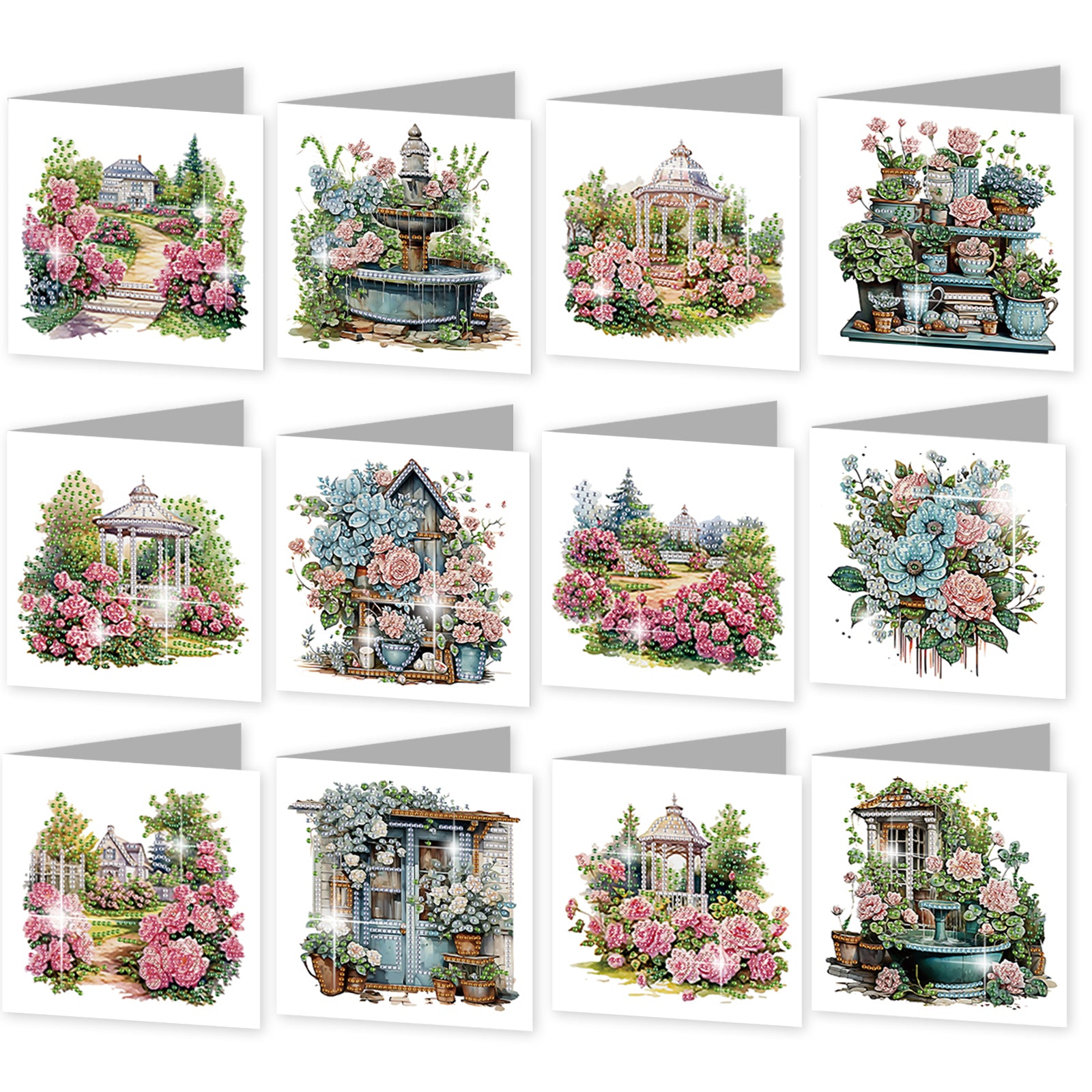 12Pcs Garden Flowers DIY Diamond Painting Greeting Cards for Adult Holiday Gifts