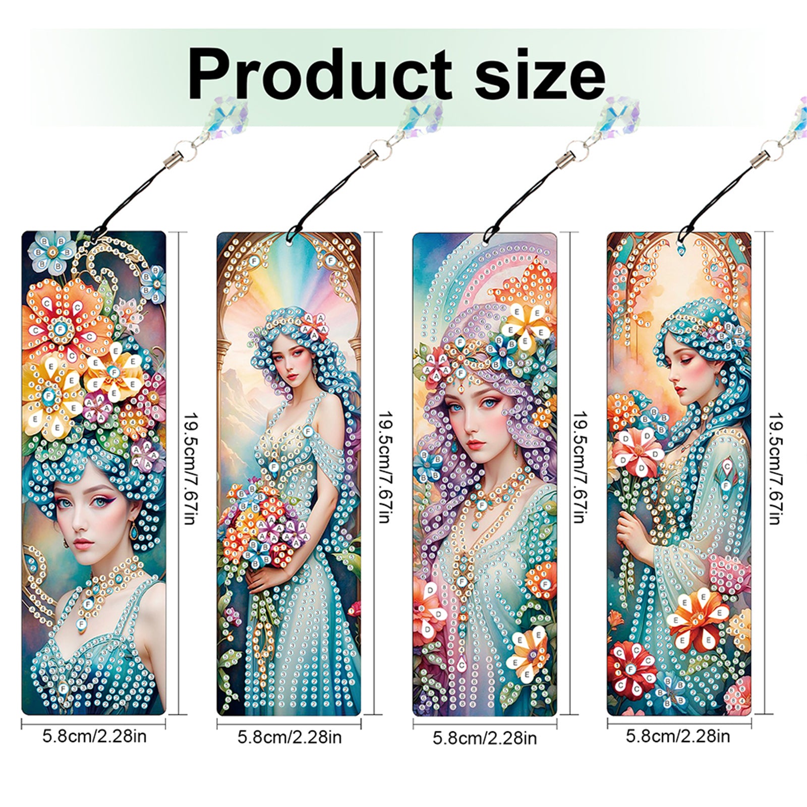12Pcs Woman DIY Diamond Painting Bookmark with Crystal Pendant for Book Decor