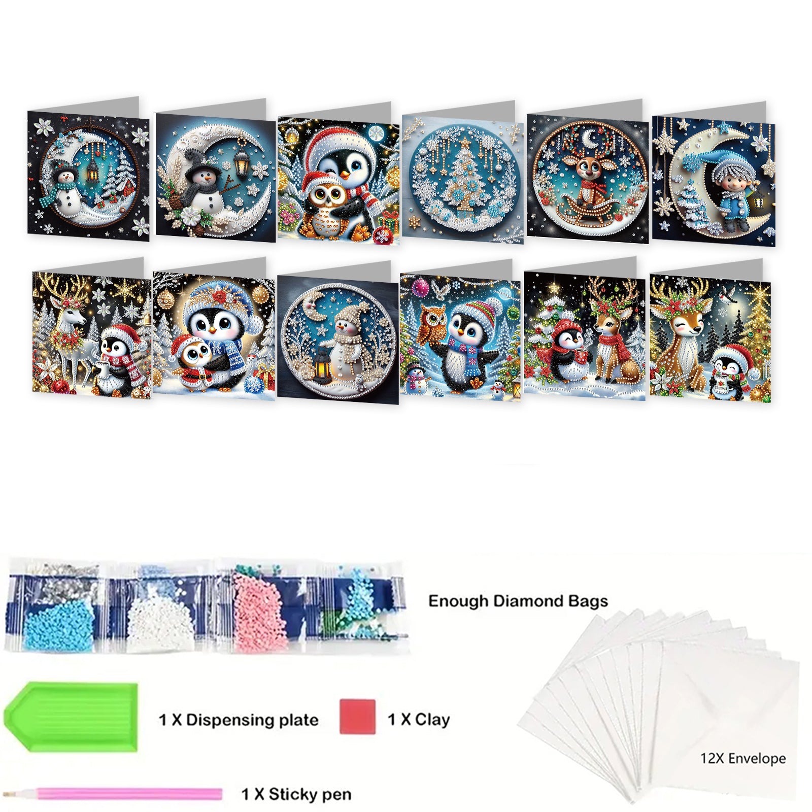 12Pcs Xmas Animal DIY Diamond Painting Greeting Cards for Adult Holiday Gifts