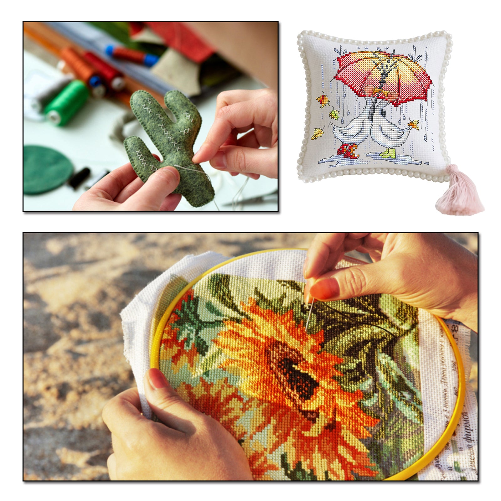 14CT Needle Insert Bag 2 Strands Printed Knitting Threads Pin Pouch with Tassel