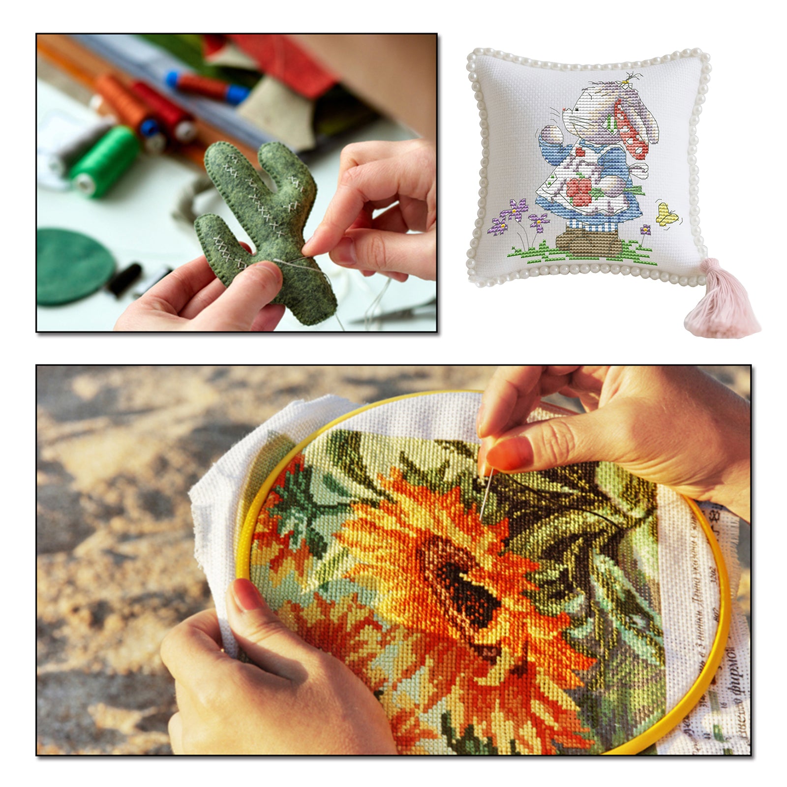 14CT Needle Insert Bag 2 Strands Printed Knitting Threads Pin Pouch with Tassel