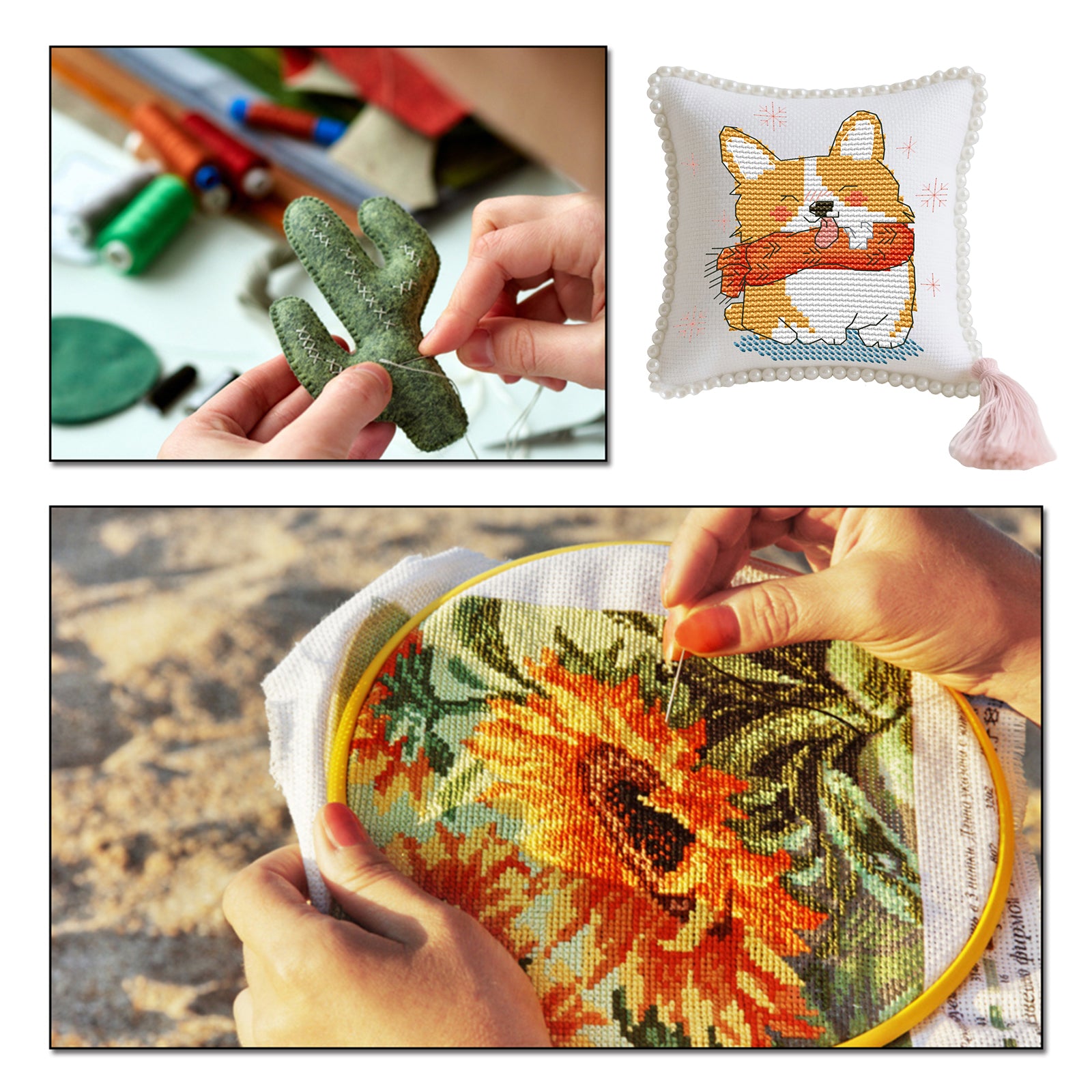 14CT Needle Insert Bag 2 Strands Printed Knitting Threads Pin Pouch with Tassel