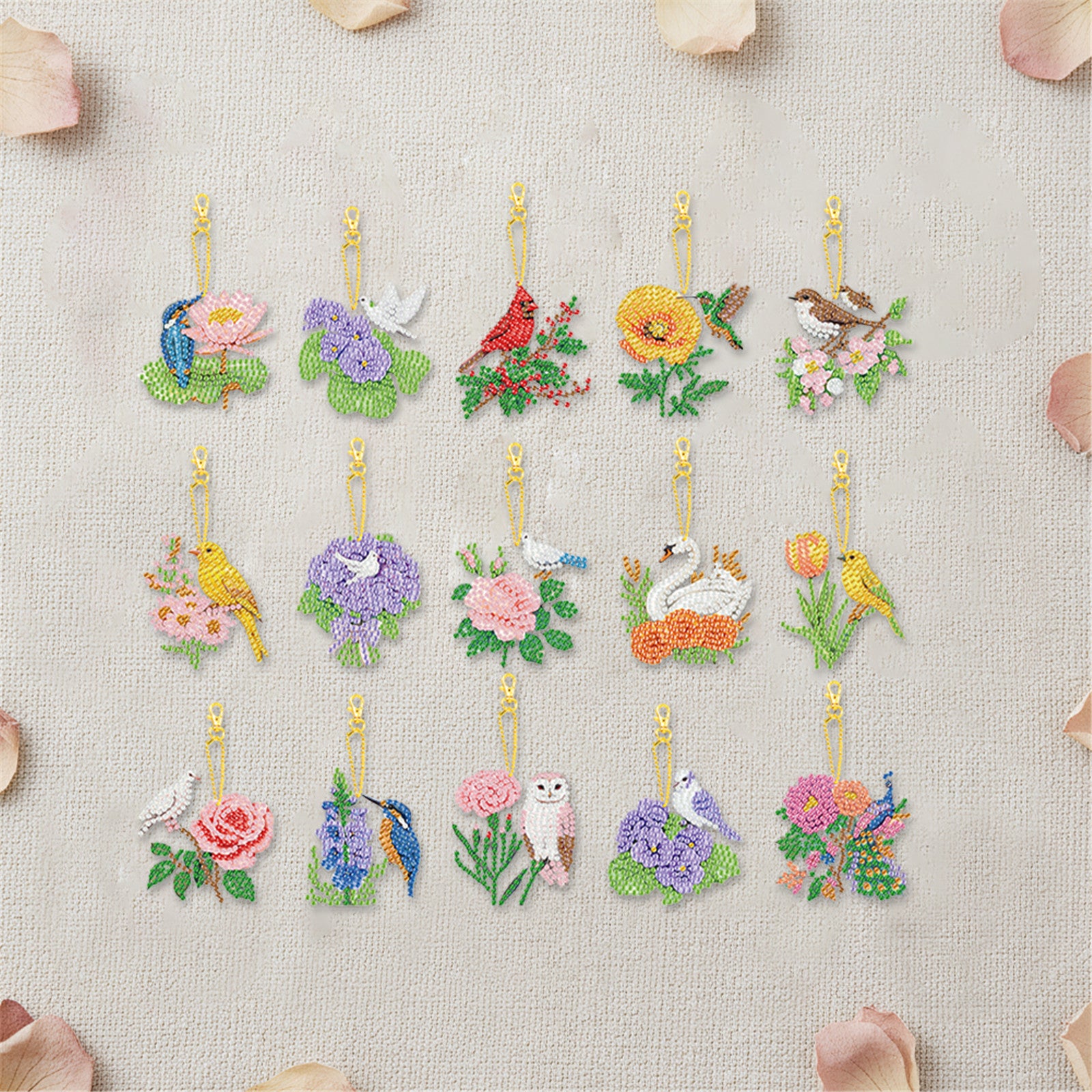 15Pcs Flowers Animals DIY Double Sided Diamond Painting Keychain Kits for Adults
