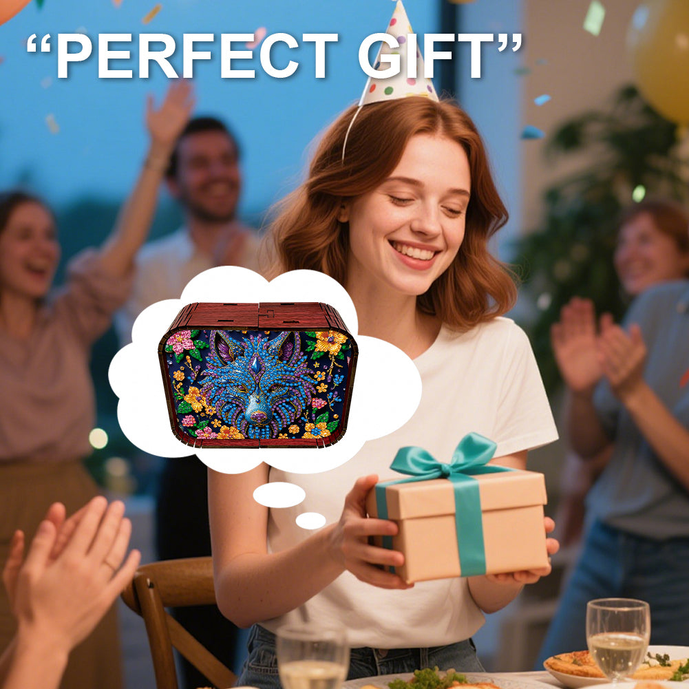 1pc Gem Wolf Handmade Wooden Music Box Diamond Painting Art Kit Birthday Gift