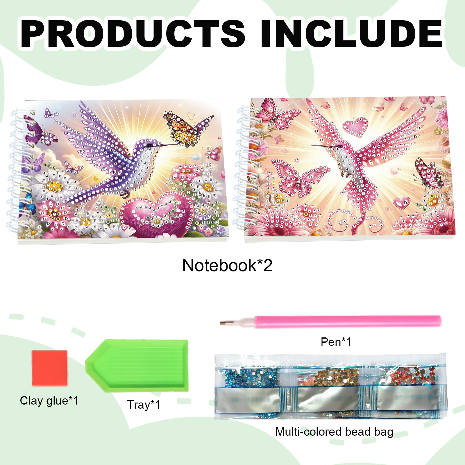 2 Pack Hummingbird DIY Diamond Art Spiral Notebook Kit 80Pages No Lines Gifts
