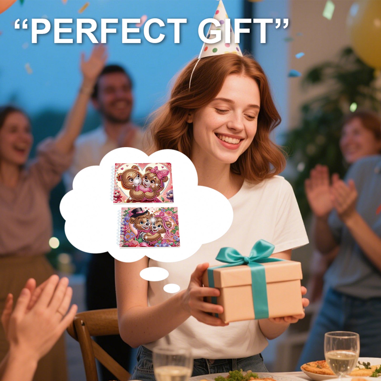 2 Pack Love Bear DIY Diamond Art Spiral Notebook Kit 80Pages No Lines Gifts