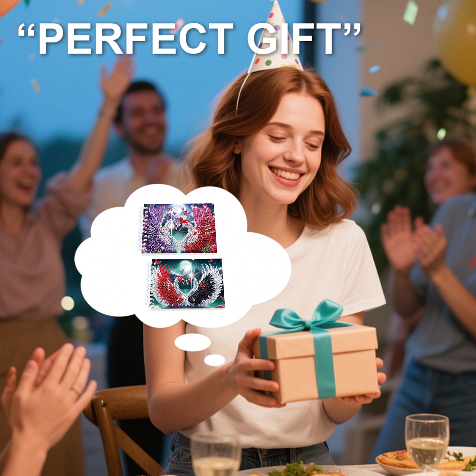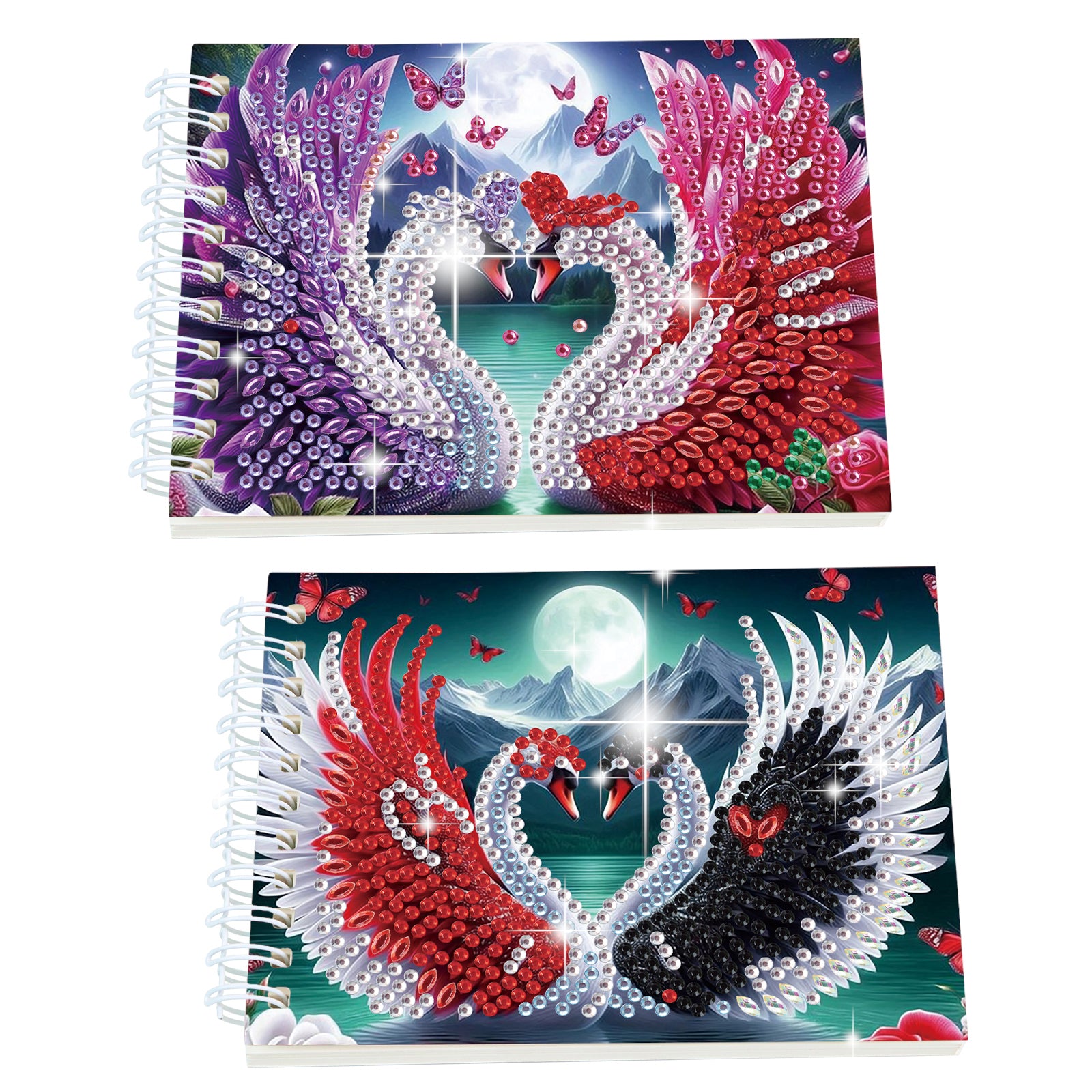 2 Pack Swan DIY Diamond Art Spiral Notebook Kit 80Pages No Lines Gifts for Adult