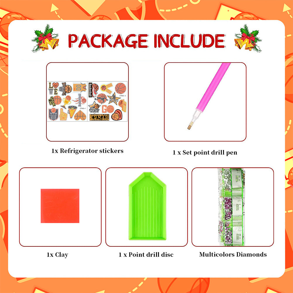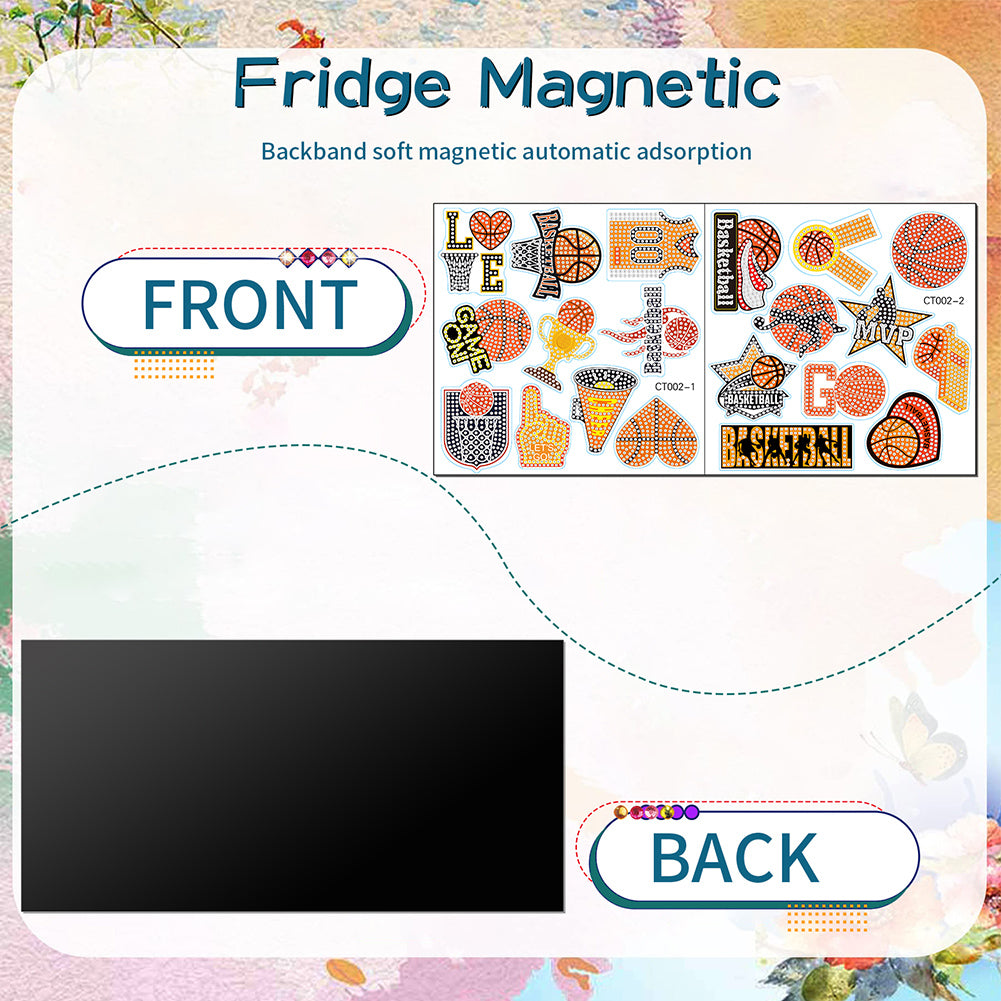 2 PCS Basketball Round Diamond Painting Magnet Refrigerator for Fridge Car Decor