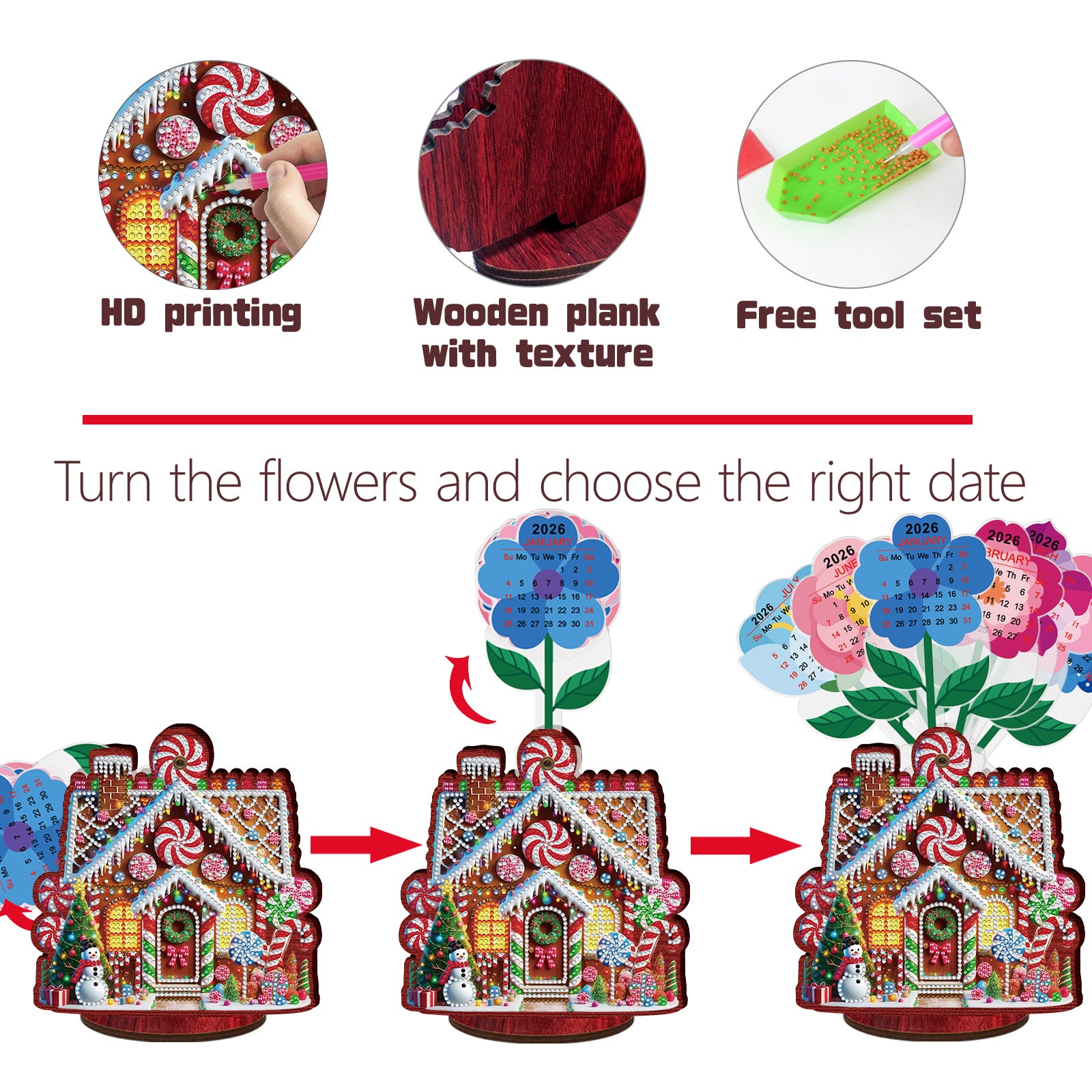 2026-2027 House Wooden DIY 5D Diamond Painting Calendar for Home Office Decor