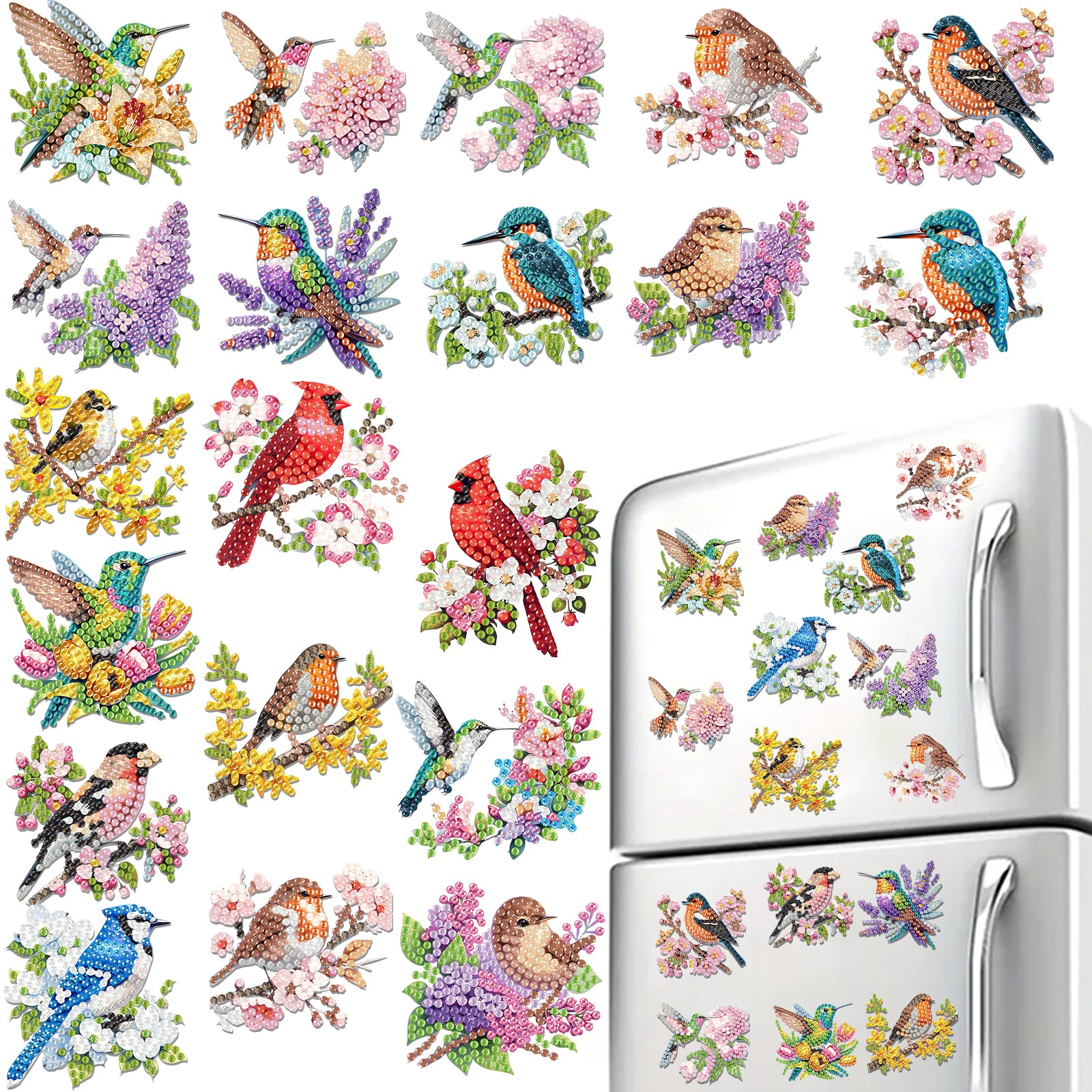 20Pcs Birds And Flowers DIY Diamond Painting Magnets Kits for Beginners Adults