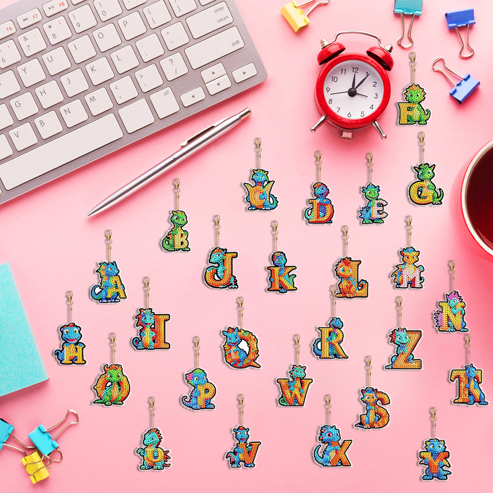 26PCS Special Shape Diamond Art Keyring 26Letters for Adult Kid Handbag Decor