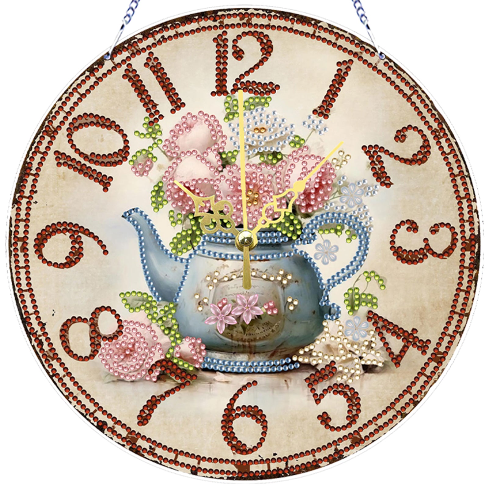 2D DIY Acrylic Blue Flower Diamond Painting Wall Clock Pendant w/ Clock Function