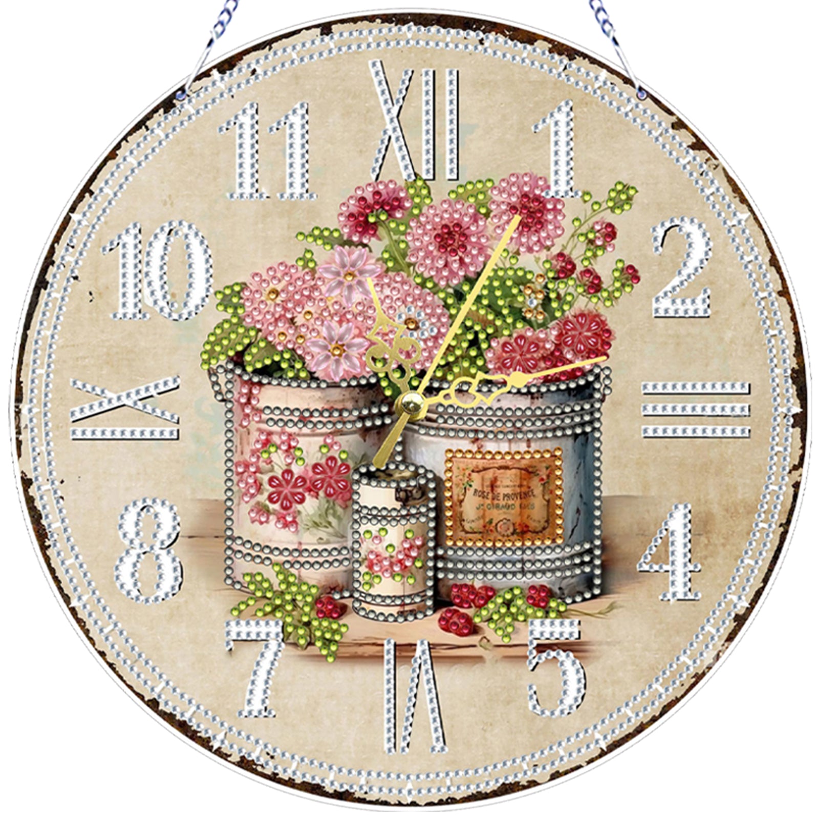 2D DIY Acrylic Iron Bucket Diamond Painting Wall Clock Pendant w/ Clock Function