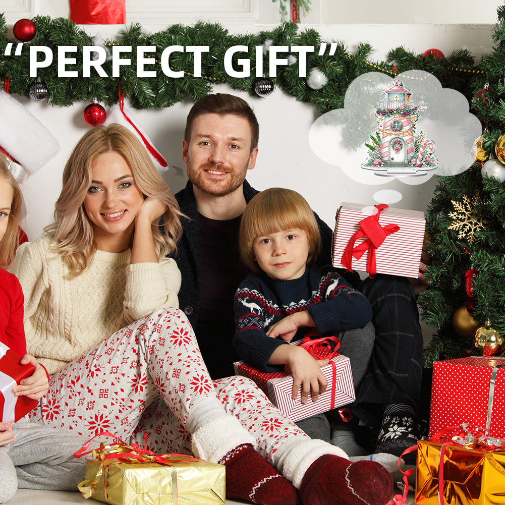 2D Flat Christmas Lighthouse Print DIY Table Top Diamond Painting Ornament Kits