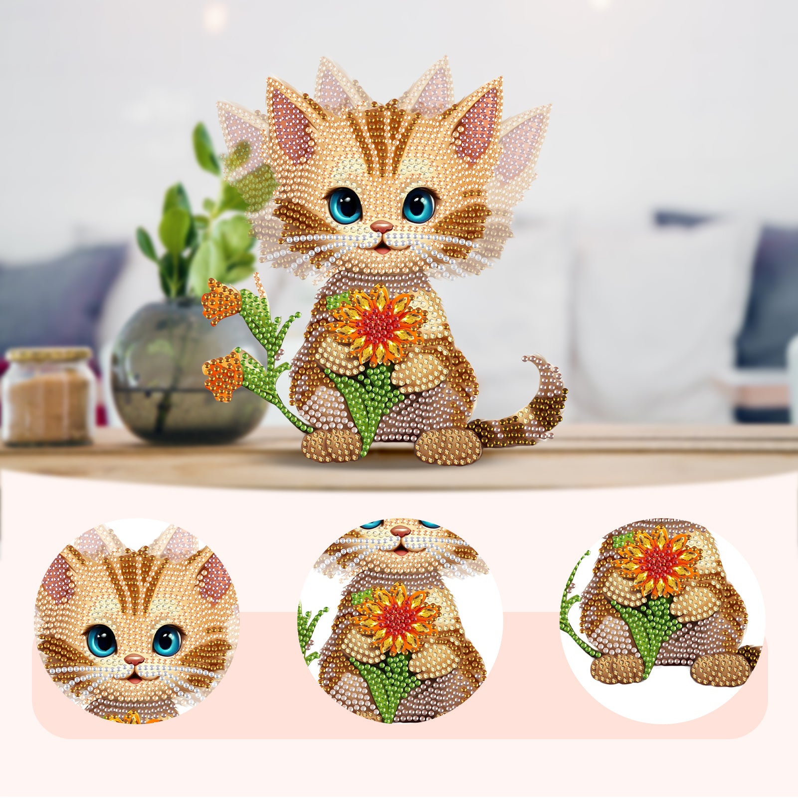 2D Flat DIY Cat Acrylic Shaking Head Diamond Painting Tabletop Ornaments Kit