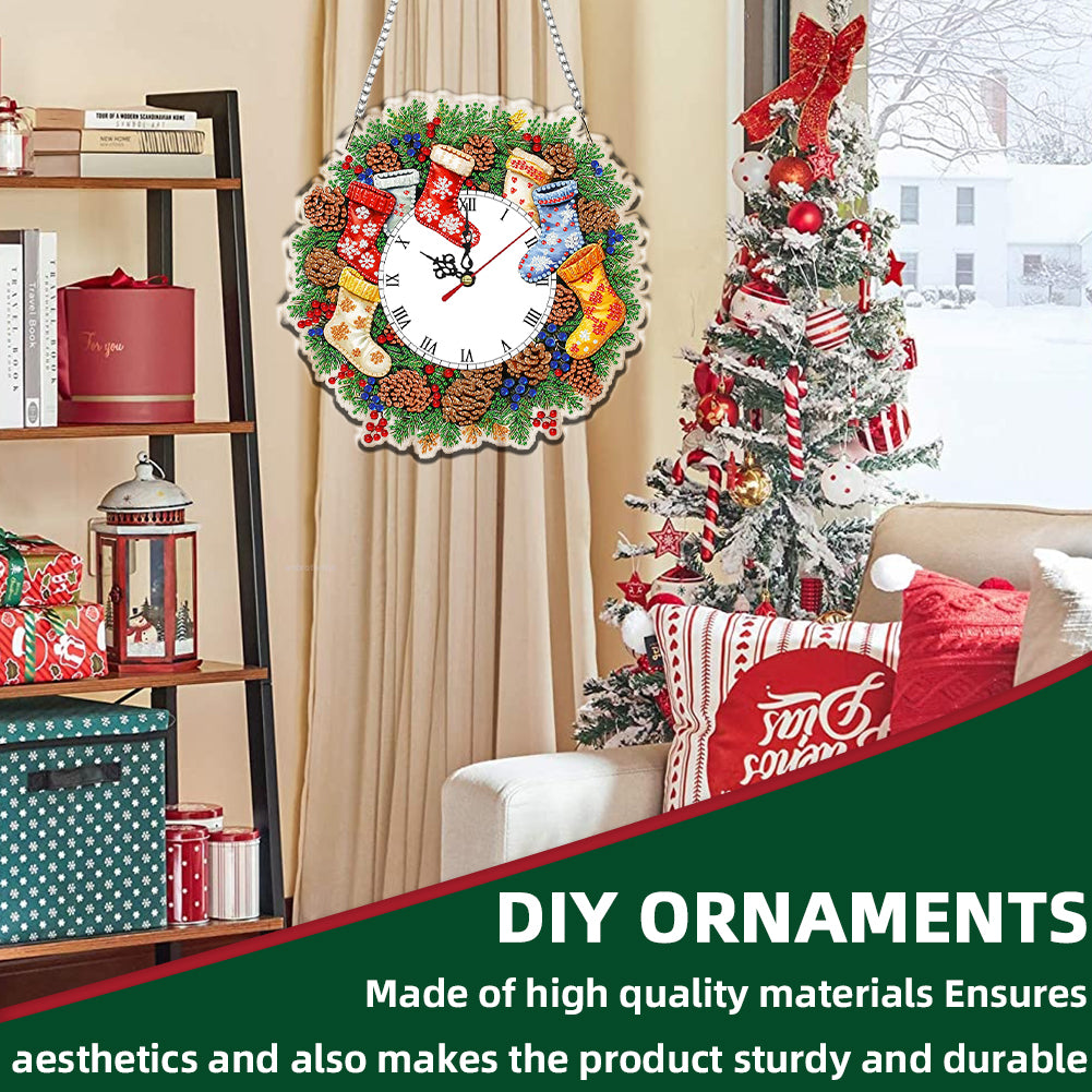 2D Flat DIY Christmas Acrylic Diamond Painting Clock Pendant for Home Decoration