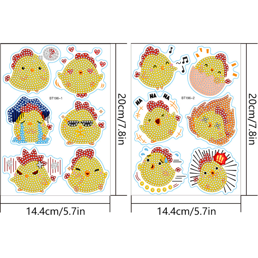 2pcs Diamond Mosaic Sticker Art Crafts Chicken Gem Sticker DIY for Kids Beginner