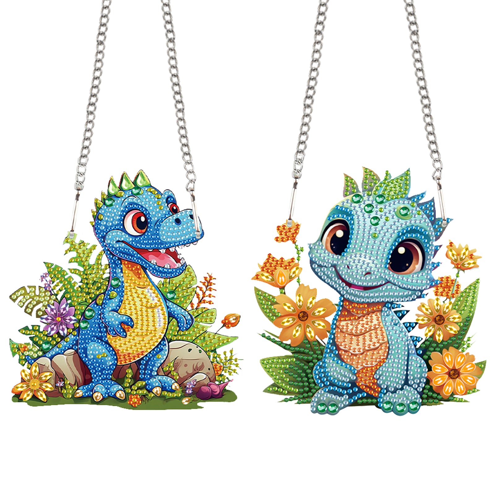 2pcs Dinosaur 2D Flat DIY Diamond Painting Set Diamond Art Pendant Wall Decor