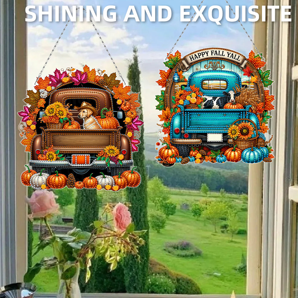 2PCS Pumpkin Car Theme 2D/Flat DIY Diamond Painting Set Hanging Diamond Art Kits