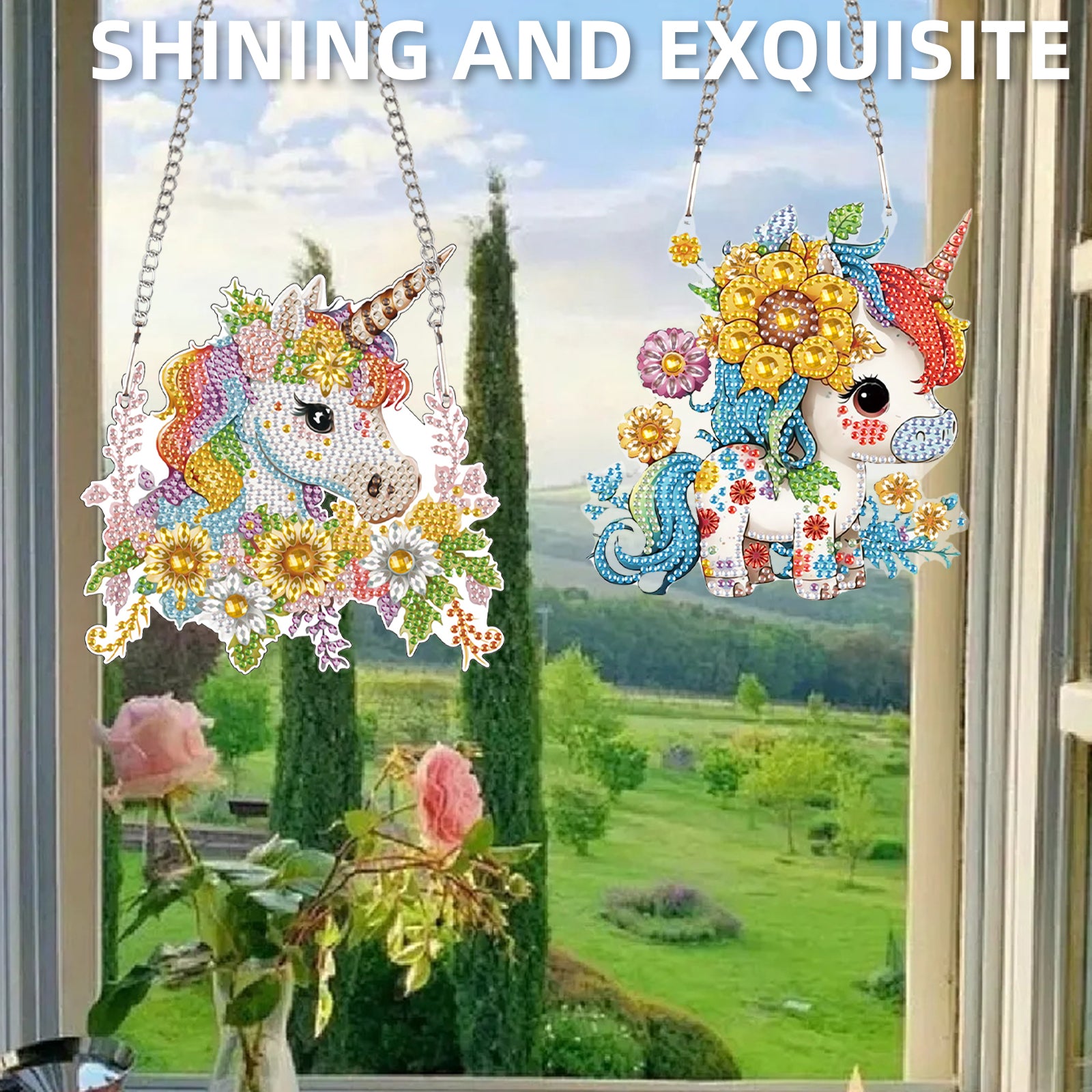 2pcs Unicorn 2D Flat DIY Diamond Painting Set Diamond Art Pendant Wall Decor