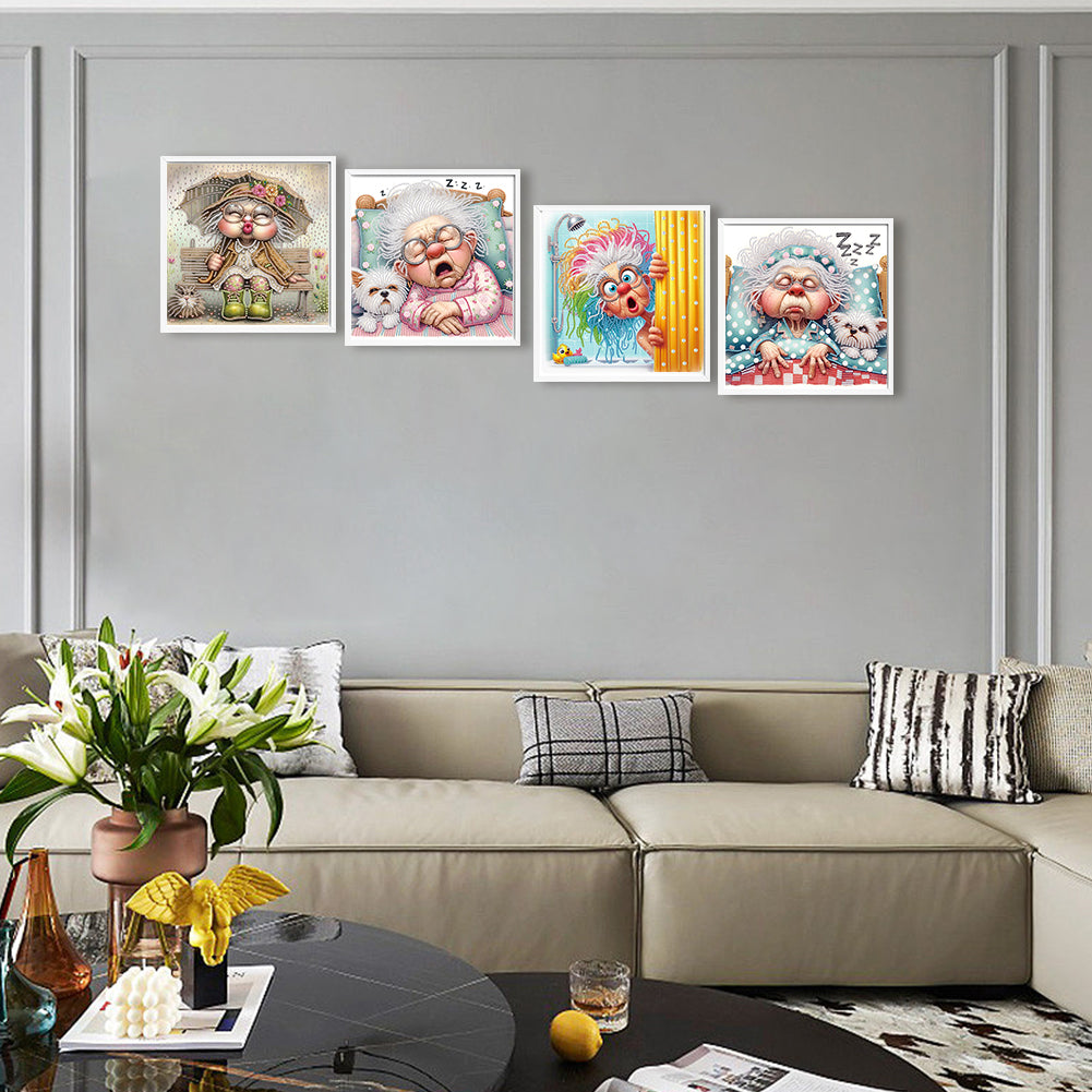 4 Pcs Old Lady - Special Shaped Drill Diamond Painting 30*30CM