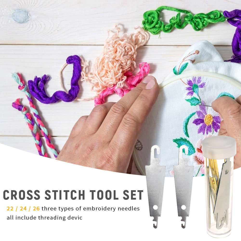 20PCS Sewing Needles 24/26 Large Eye Cross Stitch Needles with 2 Needle Threader
