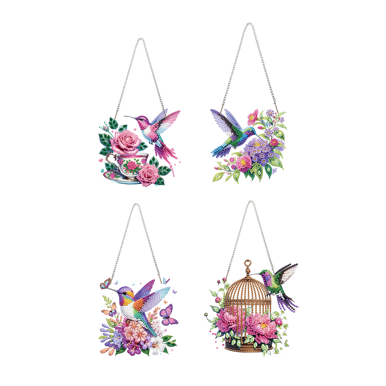4Pcs Bird 2D Flat DIY Diamond Art Pendant Acrylic Hanging Charm Window Decor