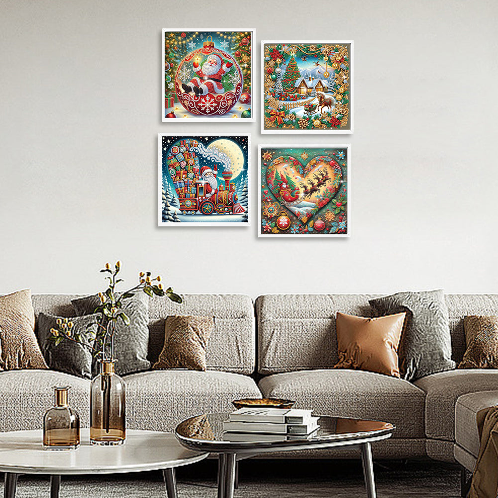 4Pcs Christmas Atmosphere - Special Shaped Drill Diamond Painting 30*30CM