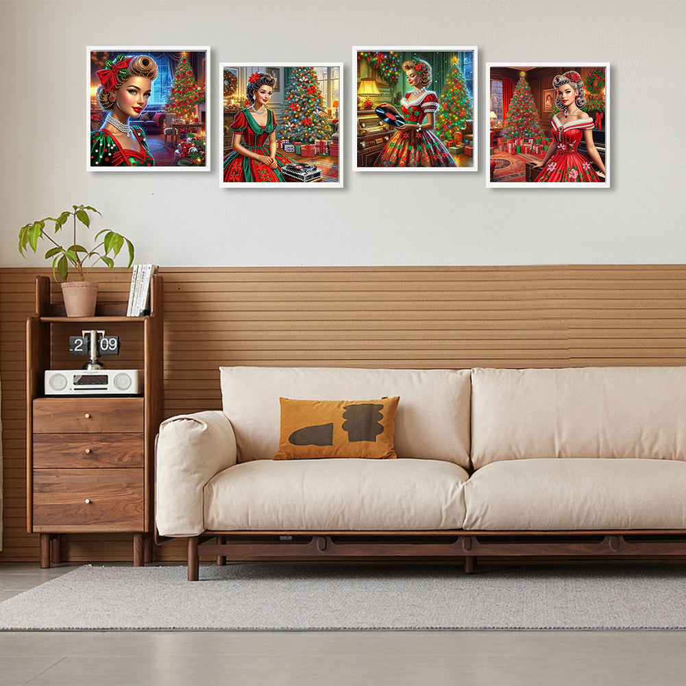 4Pcs Christmas Lady - Special Shaped Drill Diamond Painting 30*30CM