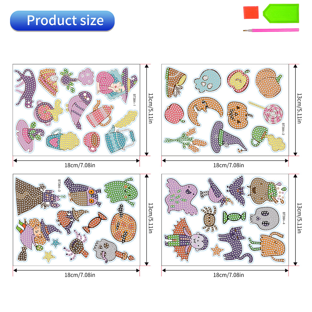4Pcs Dot Drill Sticker Art Craft Rhinestone Halloween Sticker for Kid Adult Gift