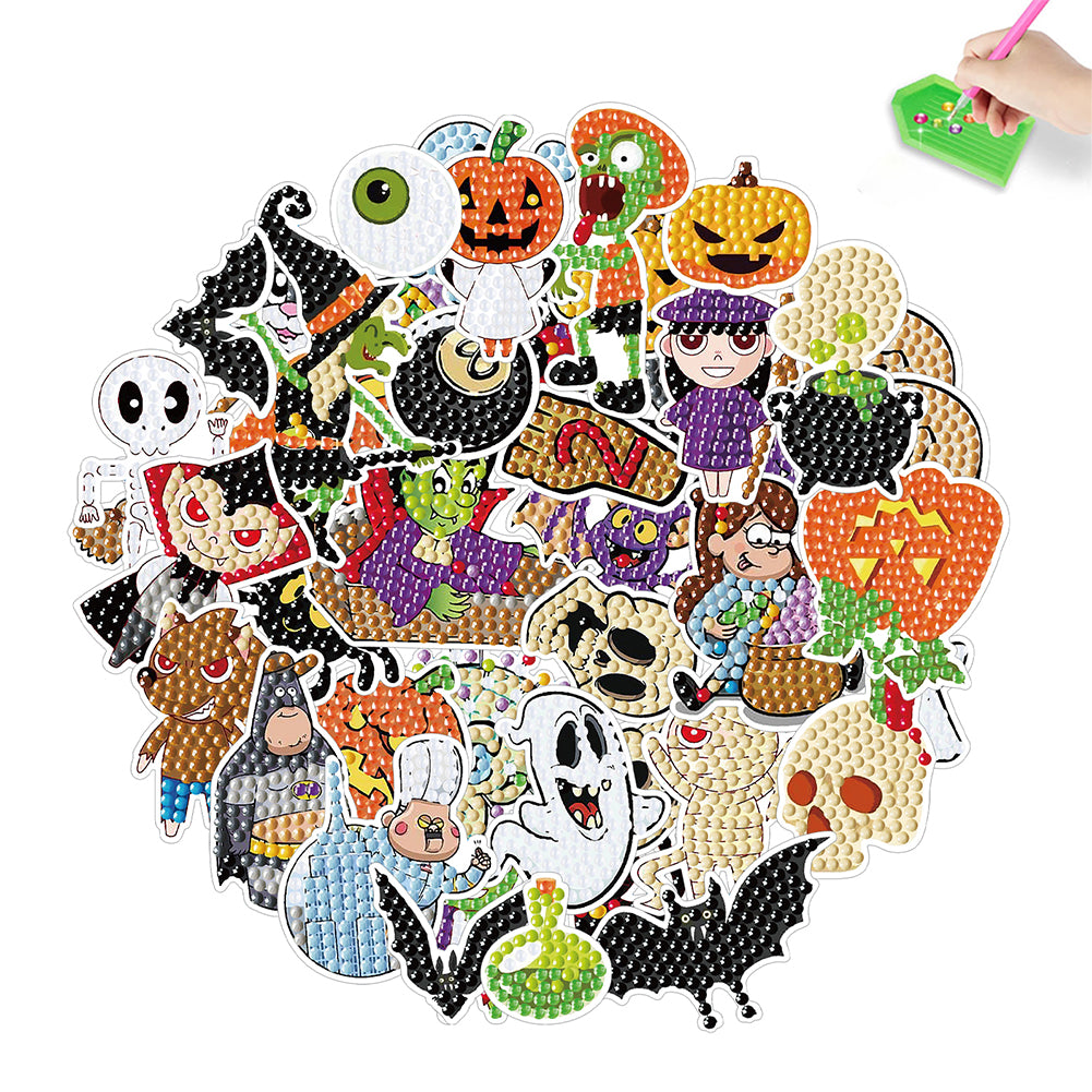 4Pcs Dot Drill Sticker Art Craft Rhinestone Halloween Sticker for Kid Adult Gift