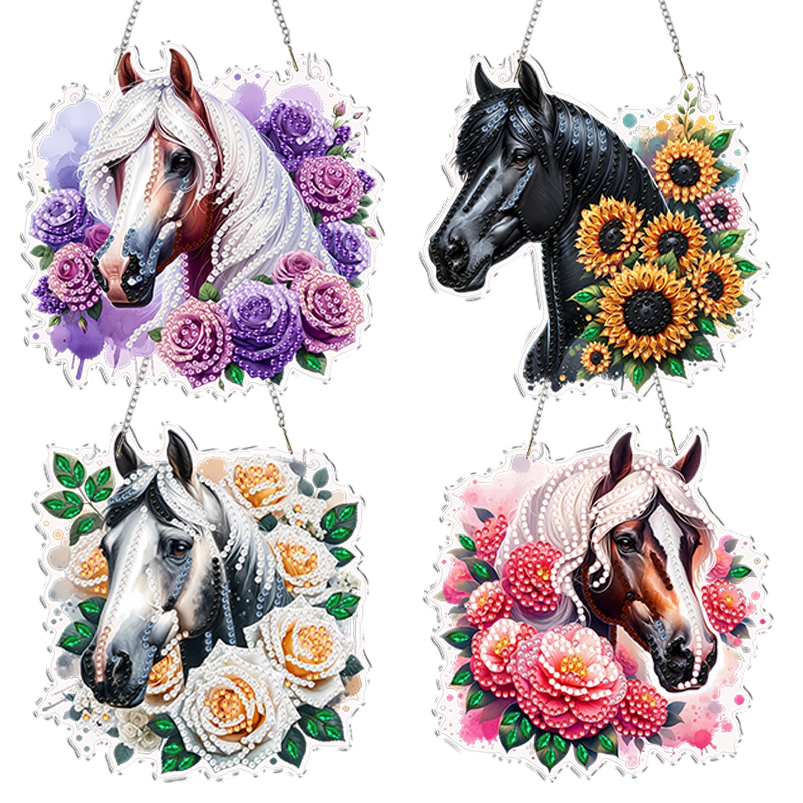 4Pcs Flower Horse 2D Flat DIY Special Shape Diamond Art Hanging Pendant Kit