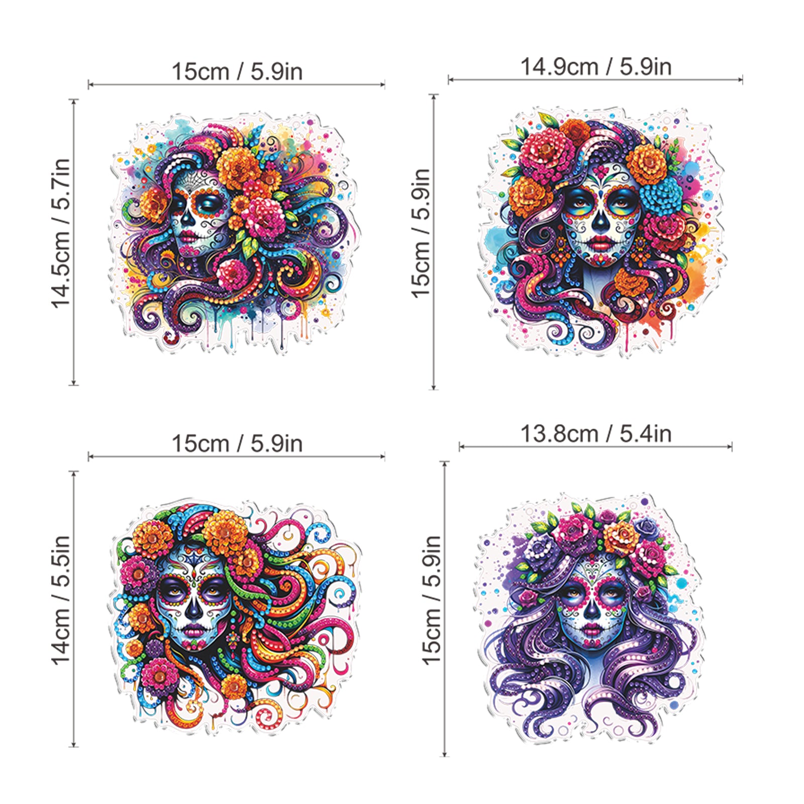 4Pcs Flower Skeleton 2D Flat DIY Special Shape Diamond Art Hanging Pendant Kit