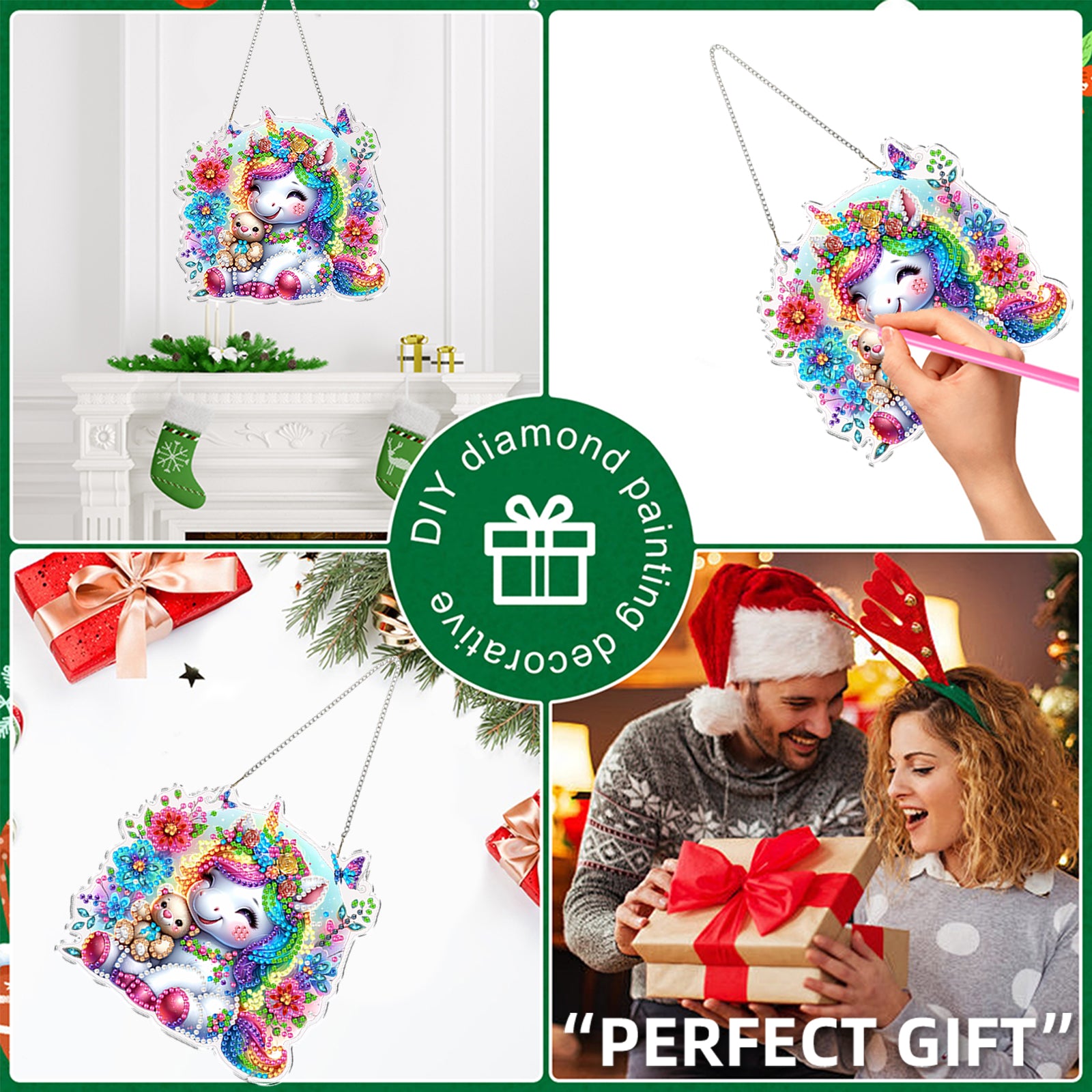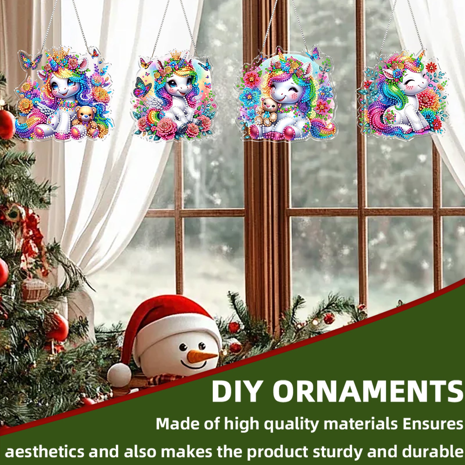 4pcs Flower Unicorn DIY 2D Flat Acrylic Diamond Painting Kit Diamond Art Pendant