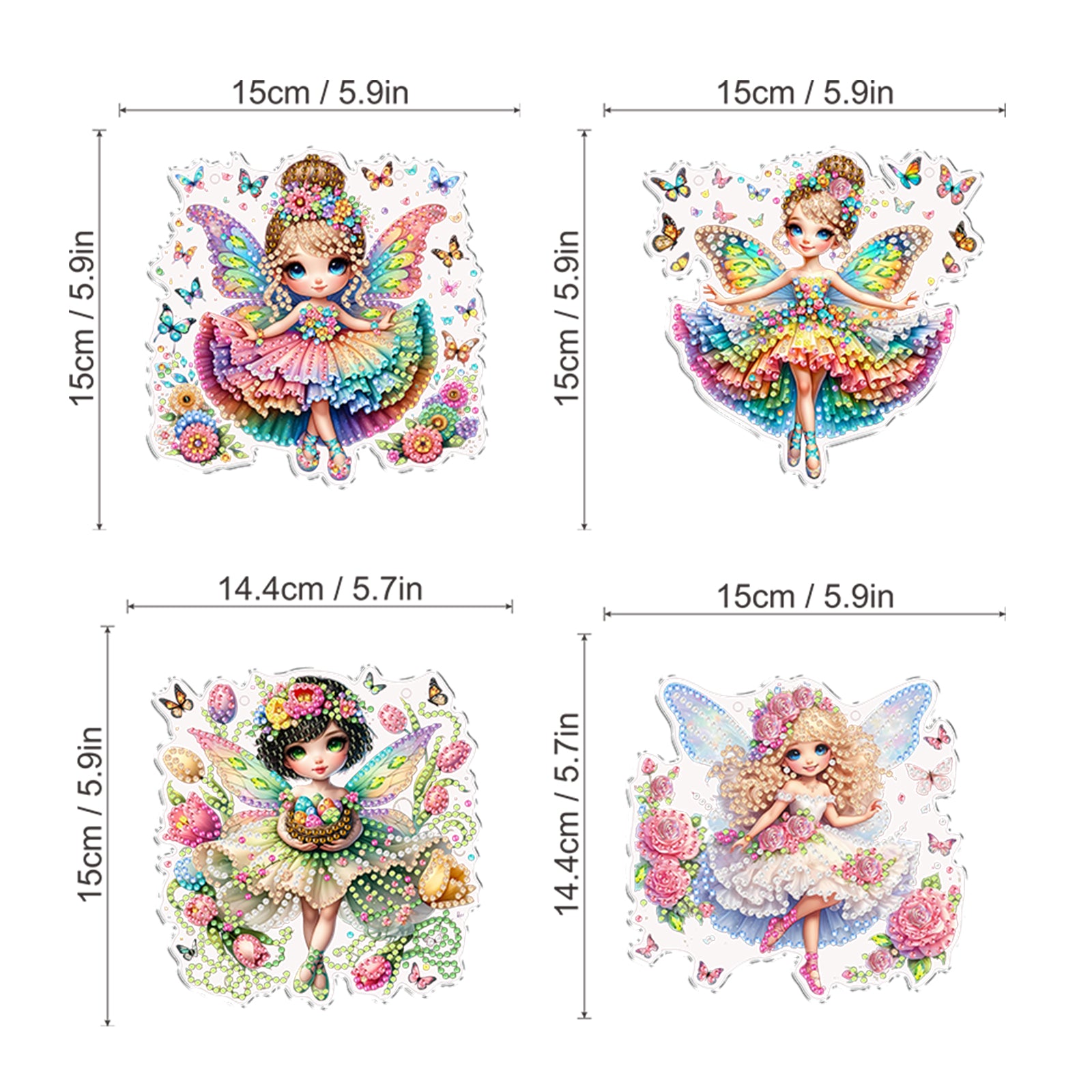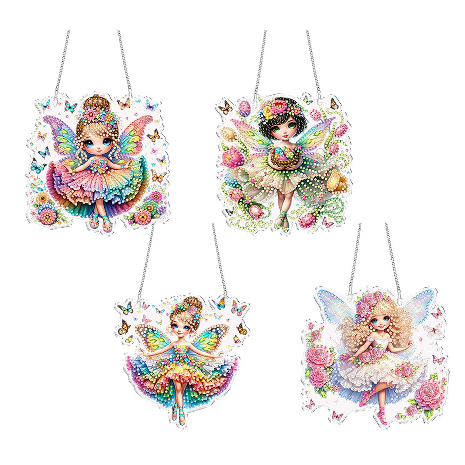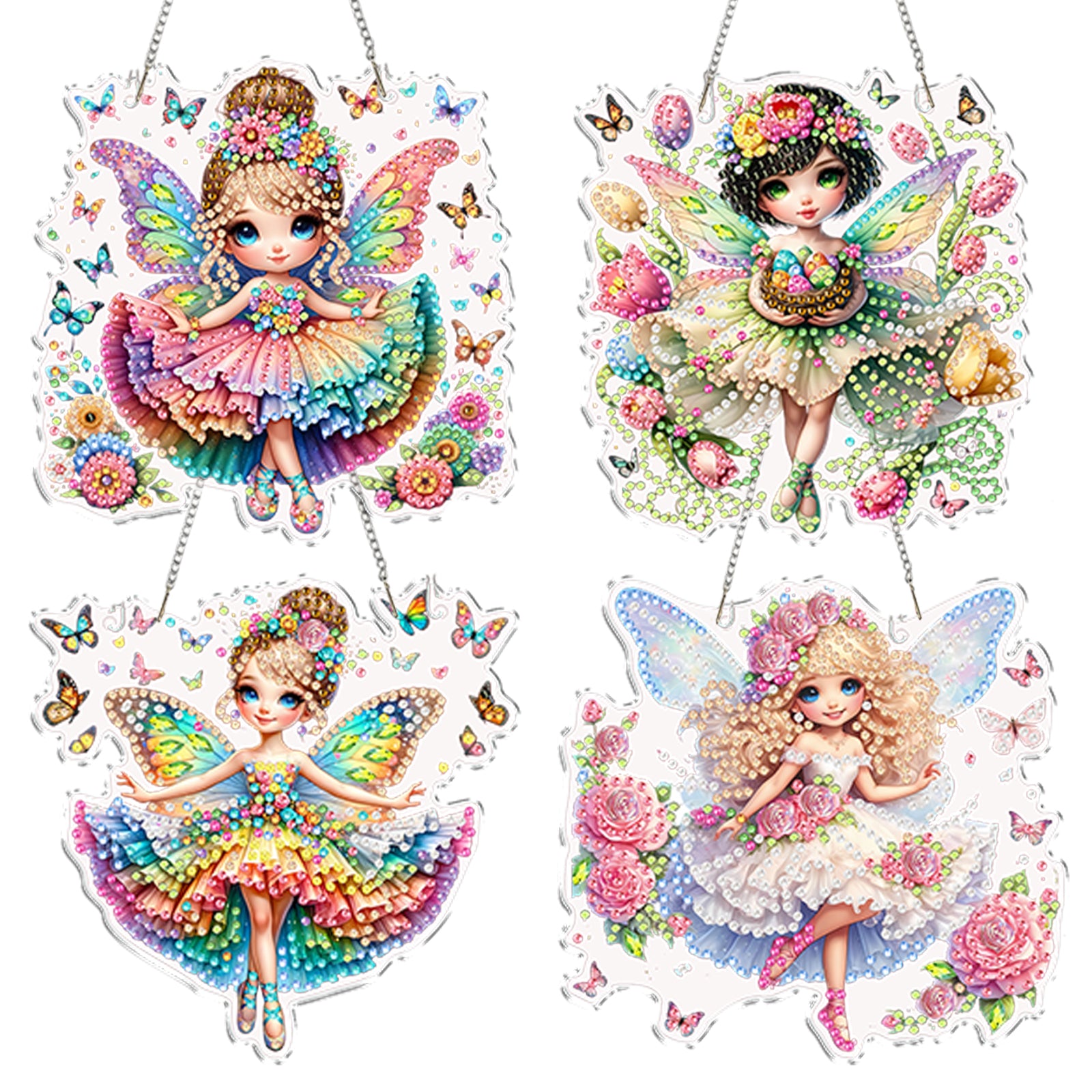 4Pcs Little Fairy 2D Flat DIY Special Shape Diamond Art Hanging Pendant Kit
