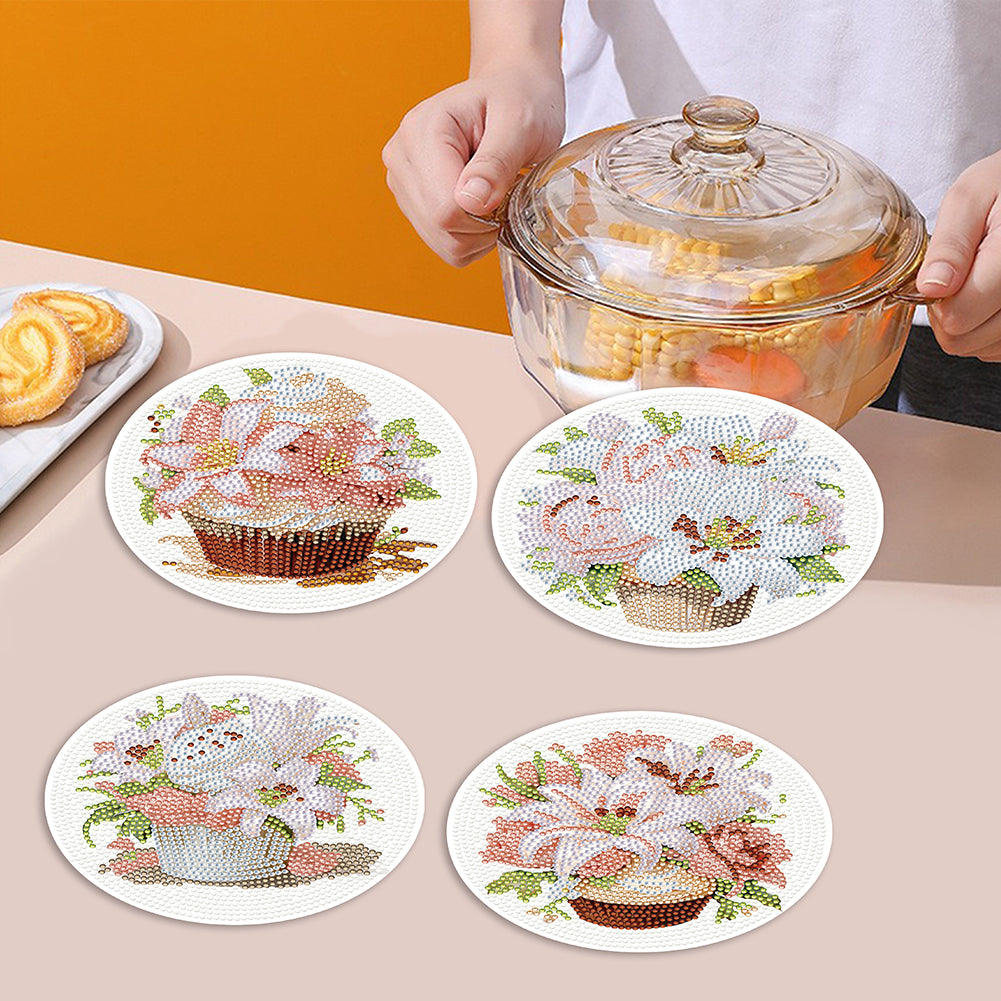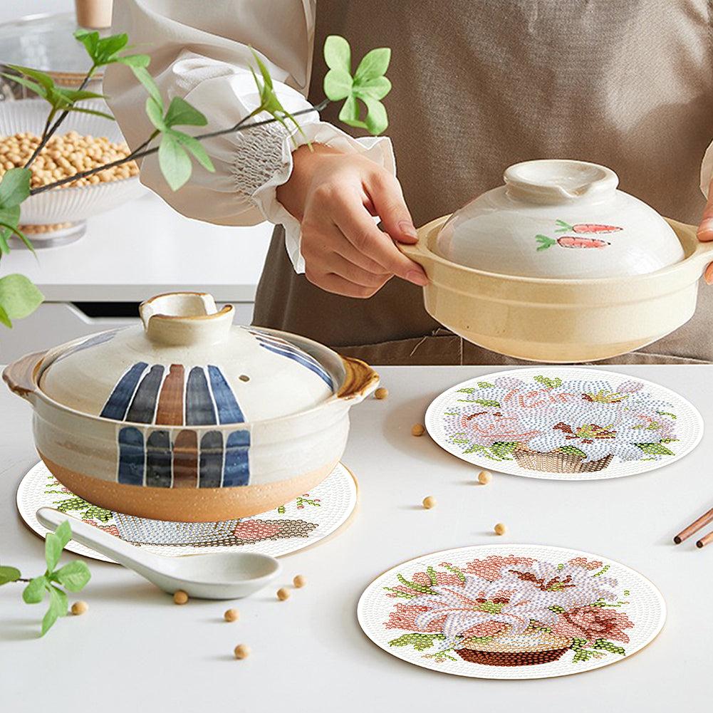 4PCS Wooden Diamond Painted Placemats for Dining Table Decor (Bouquet #9)