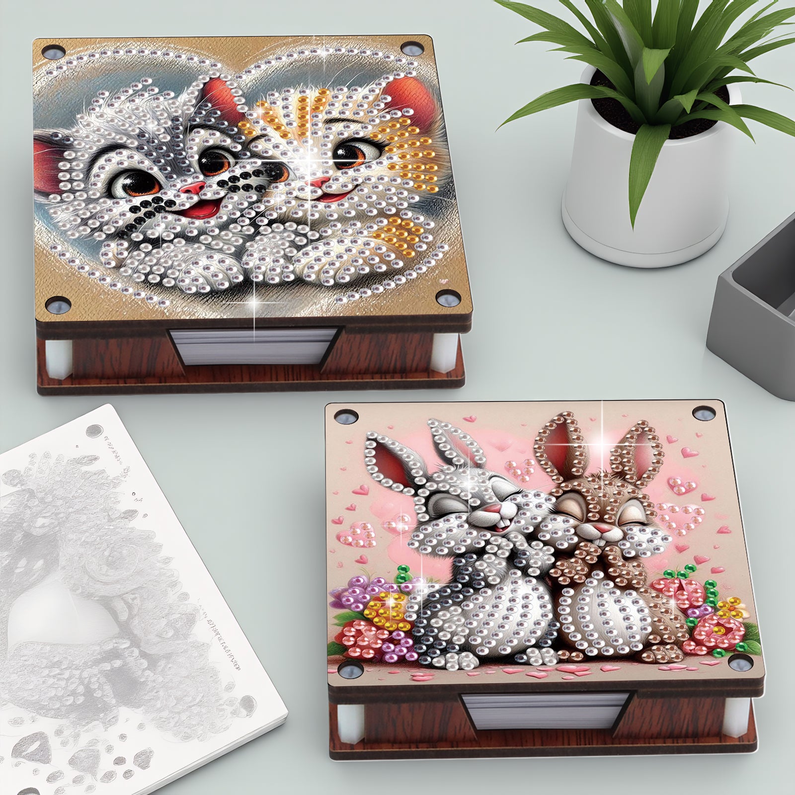 4pcs Wooden DIY Bunny Cat Diamond Painting Kit Note Box with 480 Papers Gifts