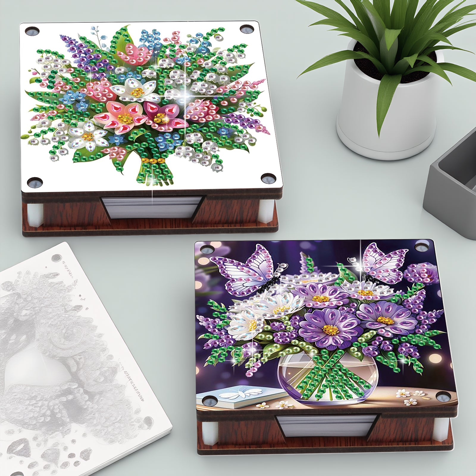4pcs Wooden DIY Flower Bouquet Diamond Painting Kit Note Box with 480 Papers
