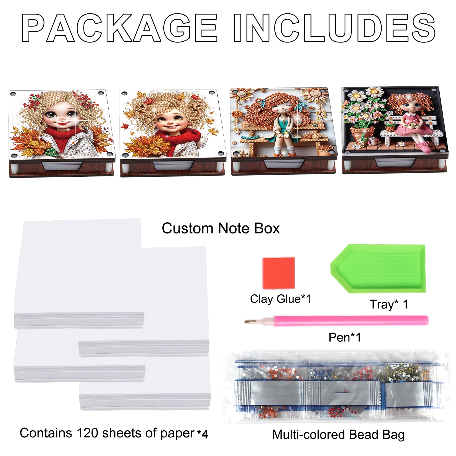 4pcs Wooden DIY Flower Girl Diamond Painting Kit Note Box with 480 Papers Gifts
