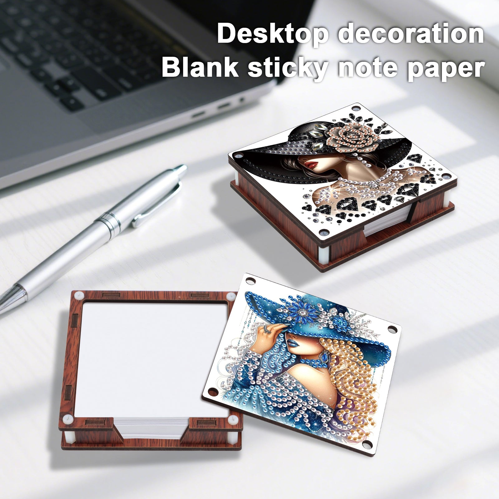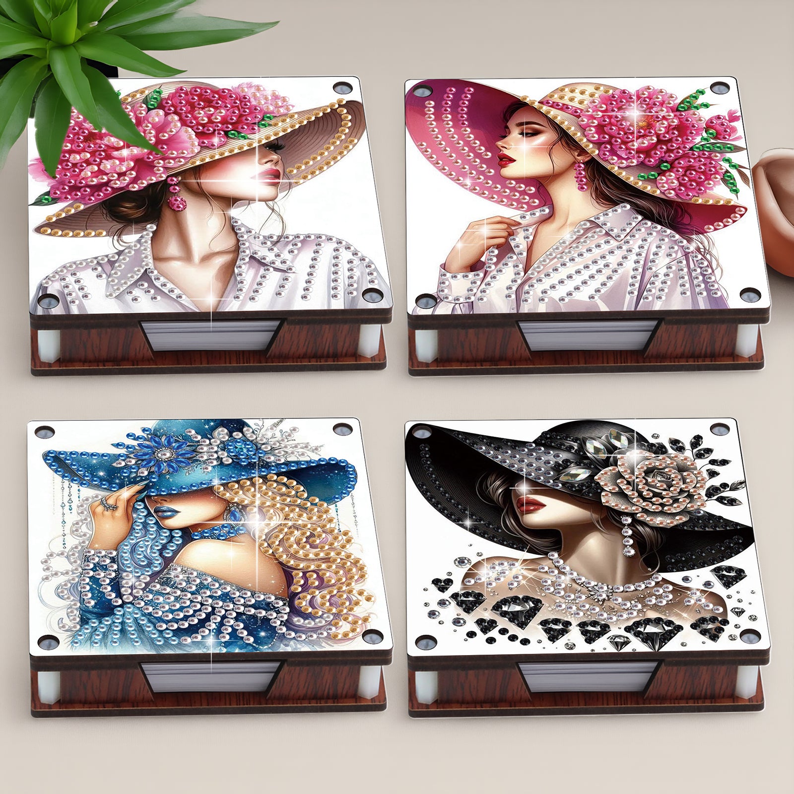 4pcs Wooden DIY Hat Girl Diamond Painting Kit Note Box with 480 Papers Gifts