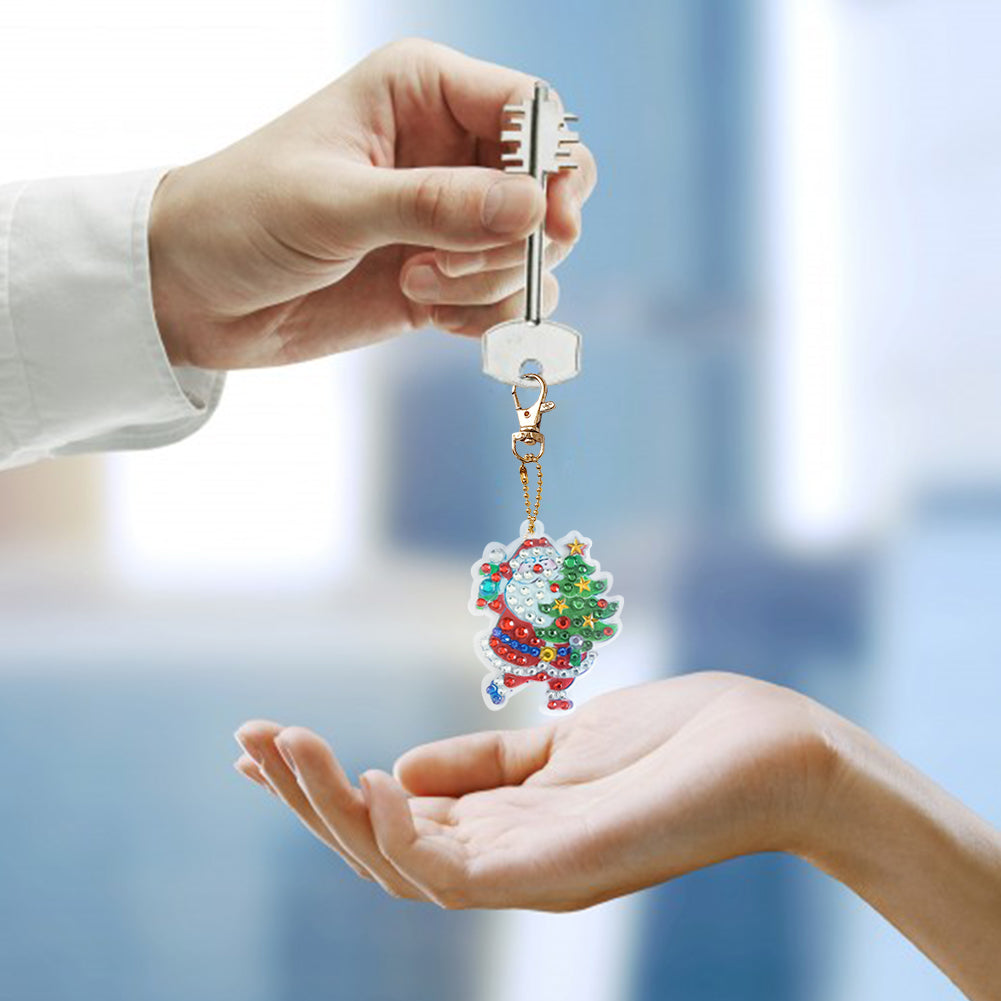4x DIY Rhinestones Picture Keychain Special Shaped Diamond Painting Keyring