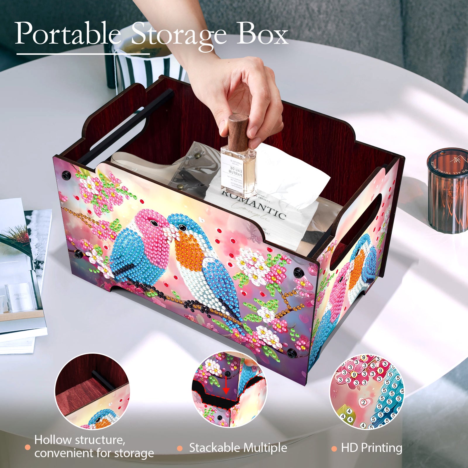 5D DIY Diamond Painting Art Decorative Storage Box Wood Storage Clutch (Bird)